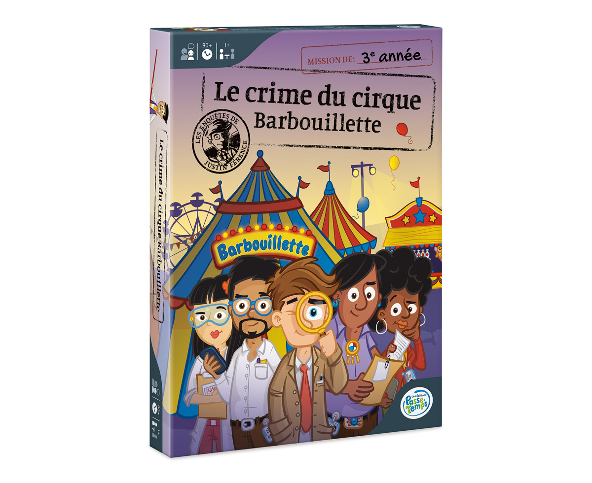 Qui a rempli la voiture de madame Didi de maïs soufflé? Pour connaitre le coupable du crime au cirque Barbouillette, il faut mener une enquête! Celle-ci se déroule en 10 étapes pendant lesquelles les élèves découvrent des indices et font des liens afin de suspecter un personnage et finalement l’accuser du crime.