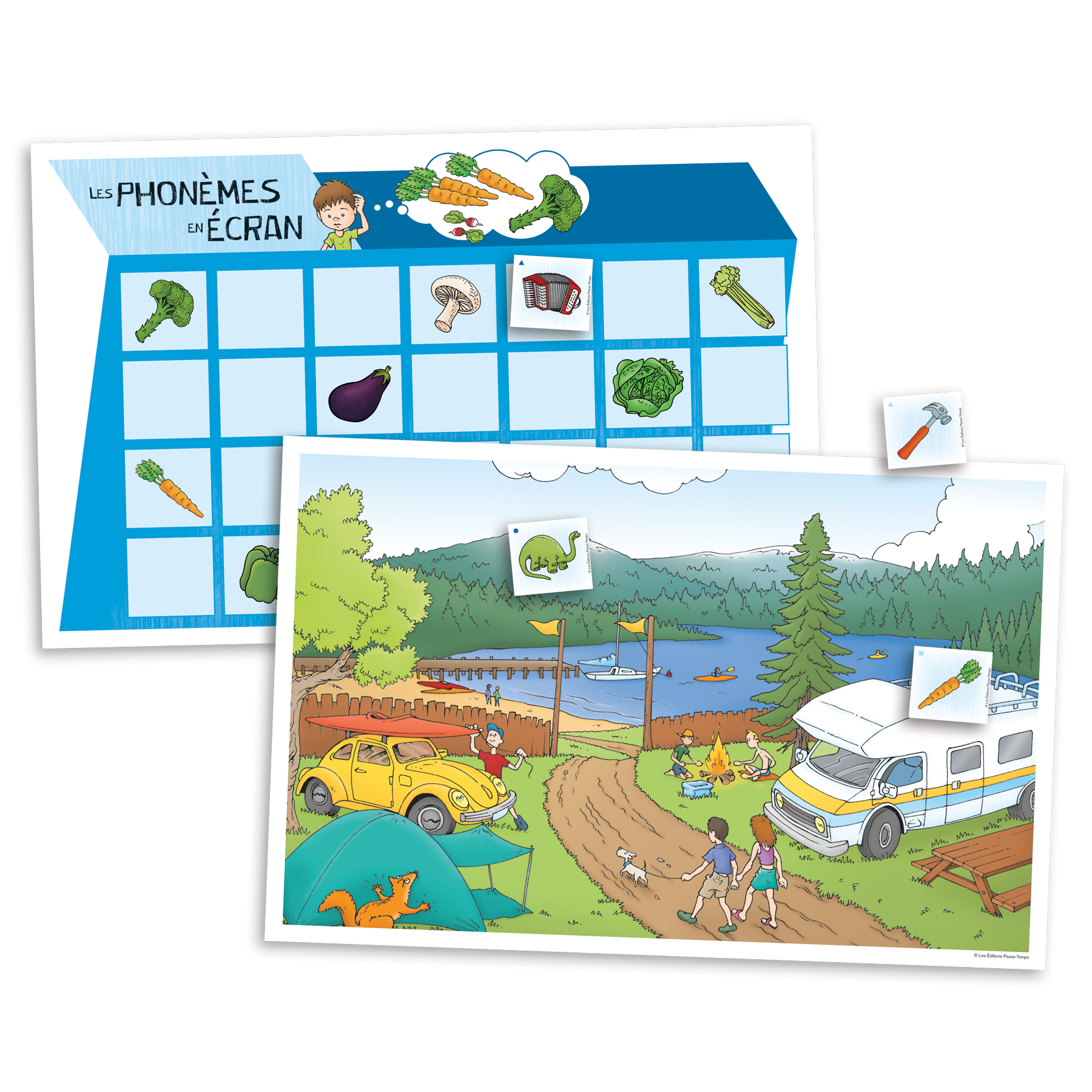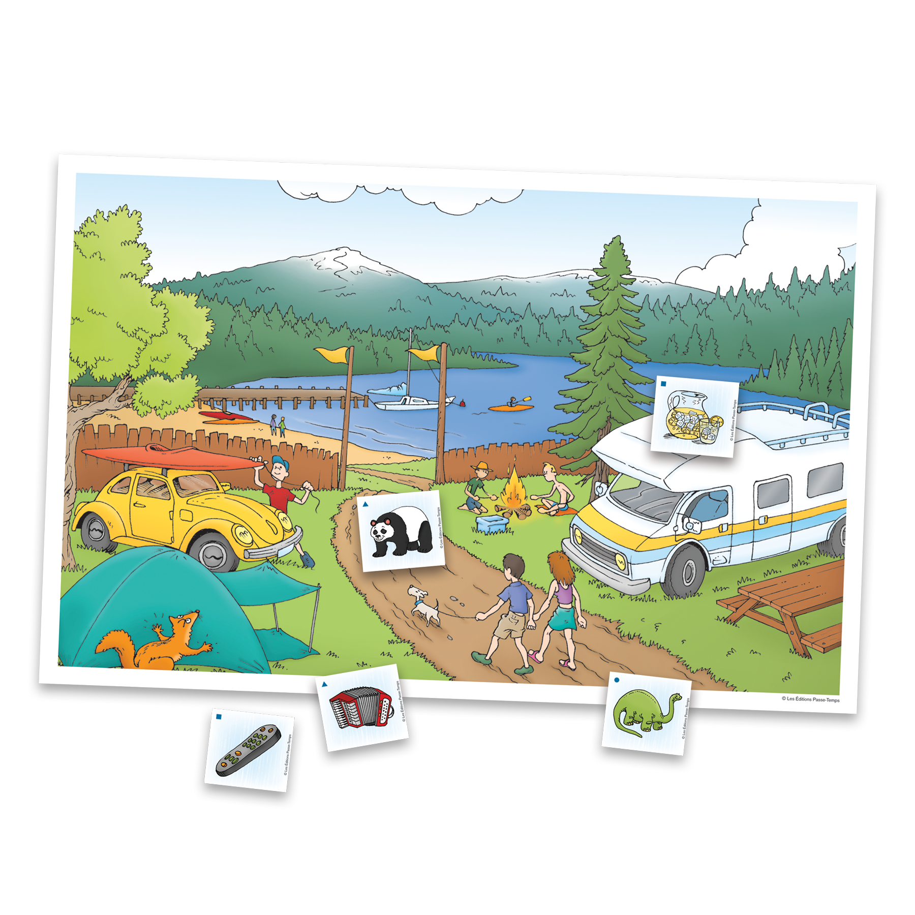 L'enfant place une à une les cartes-images sur sa planche en les décrivant avec suffisamment de précisions pour que l'autre joueur puisse réussir à placer les mêmes cartes au même endroit sur sa planche.