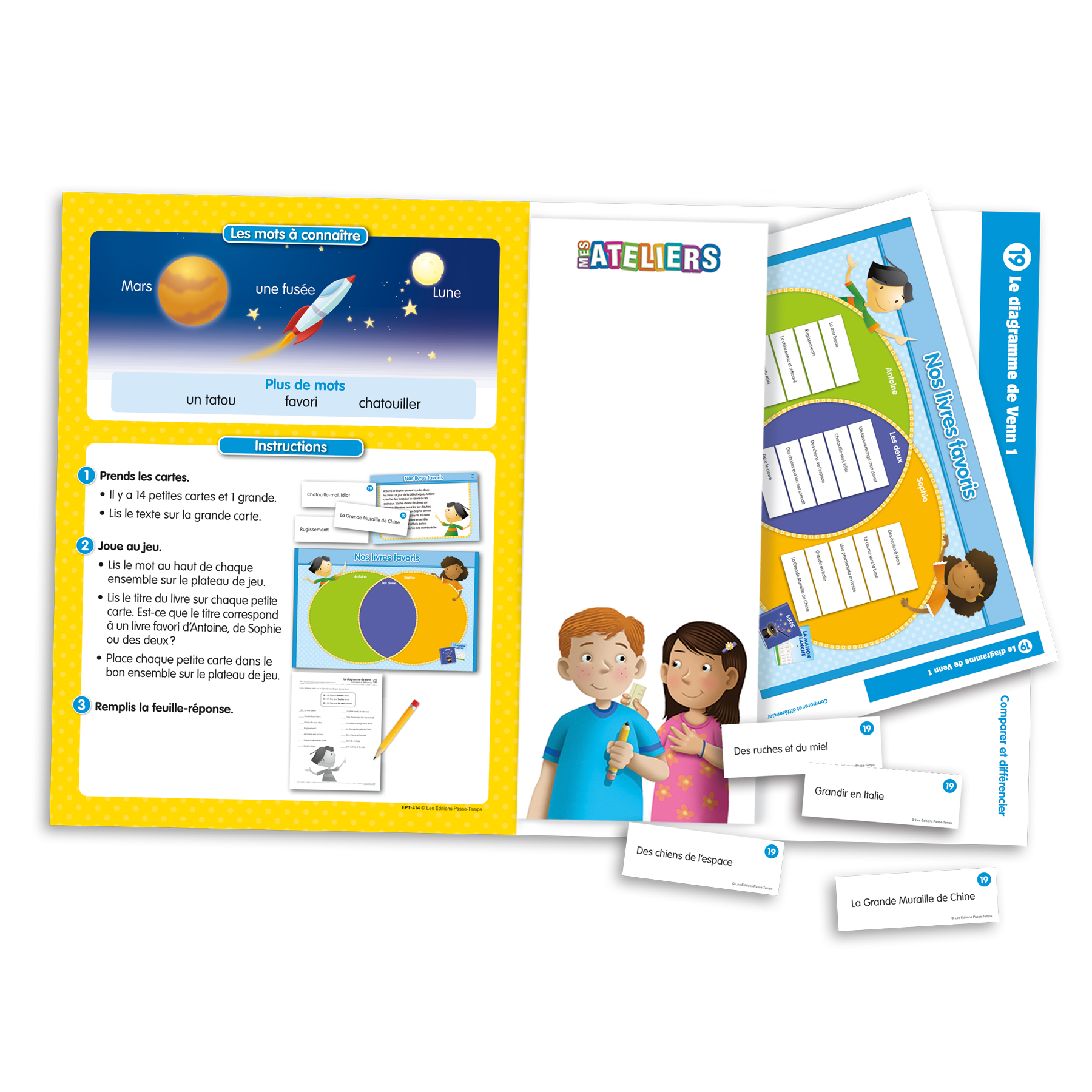 Chaque boite contient un guide de l’enseignant vous présentant chacun des 36 plateaux de jeu et vous donnant les outils nécessaires pour suivre chacun de vos élèves alors qu’ils progressent dans les ateliers.