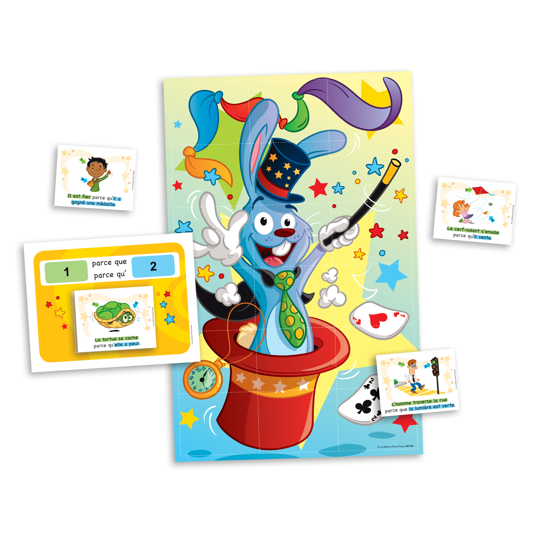 L'élève se transforme en magicien et doit formuler des phrases causales complètes pour faire disparaitre le lapin.