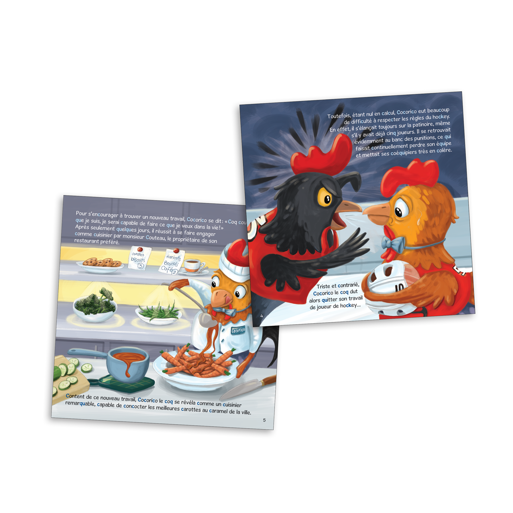 Un, deux, trois, quatre, cinq, compter peut sembler si simple... Mais pas pour Cocorico le coq qui, à l'école, était bien trop occupé à faire le coquin pour bien prendre en main ses cours de mathématiques. Toutefois, même sil est nul en calcul, il occupe maintenant plusieurs emplois, mais essuie échec après échec. Pauvre Cocorico ! Quand cessera-t-il de rêver en couleurs et réalisera-t-il donc qu'il doit apprendre à compter pour occuper le métier dont il a toujours rêvé ?