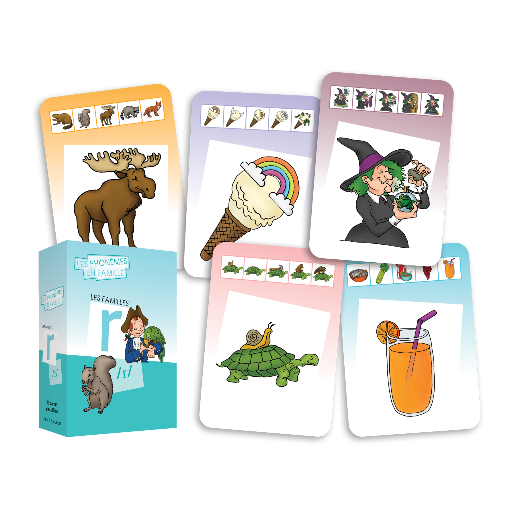 Jeu des familles permettant d’amorcer la généralisation de la prononciation du /r/ dans le cadre d’un jeu amusant.