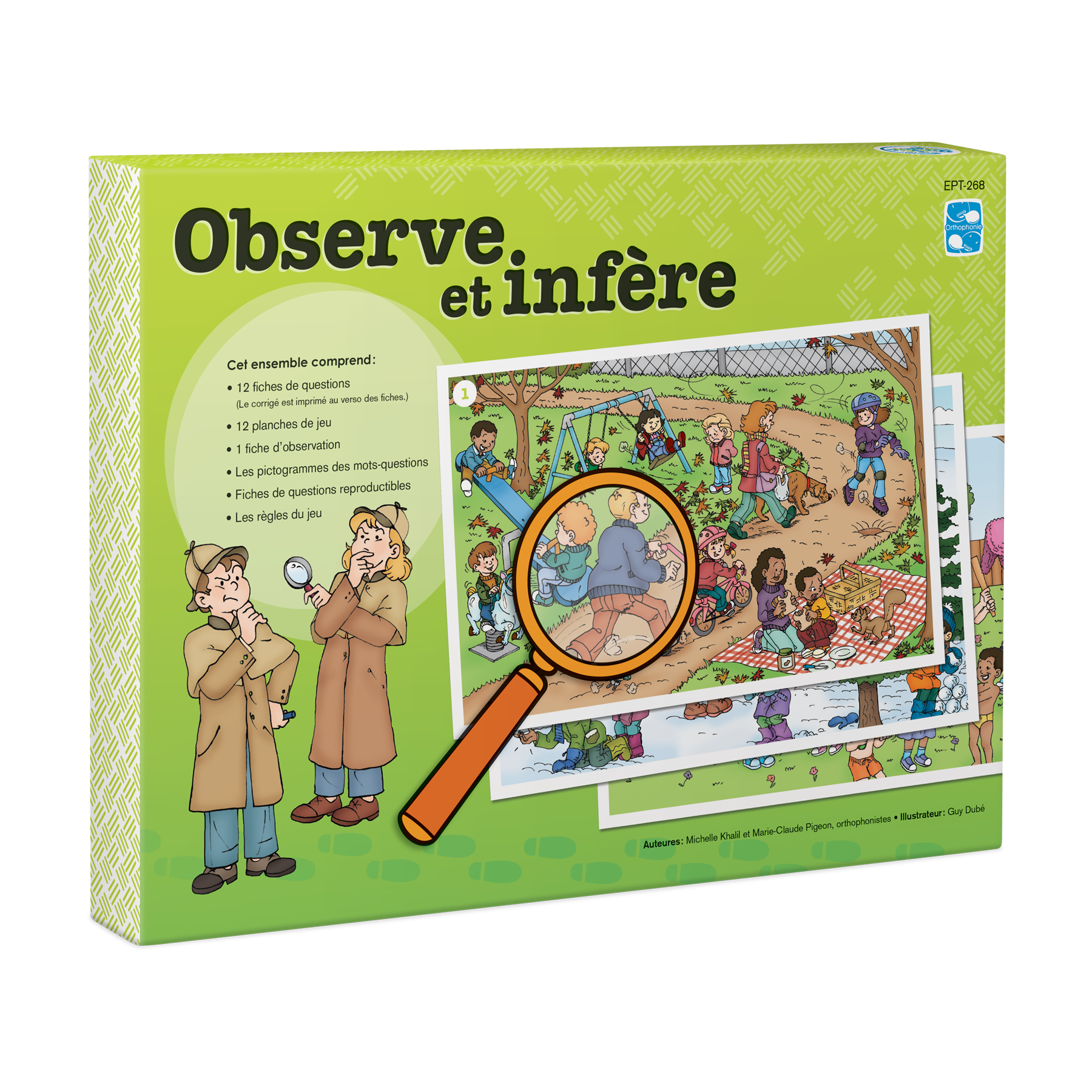 À vos loupes! Observe et infère propose une démarche en trois étapes pour travailler les inférences : rappel des connaissances antérieures, compilation d'indices visuels et déduction à partir des informations recueillies aux étapes précédentes. Les 12 grandes scènes imagées, portant sur des thèmes signifiants pour les enfants, peuvent être utilisés en grand groupe ou de manière individuelle.