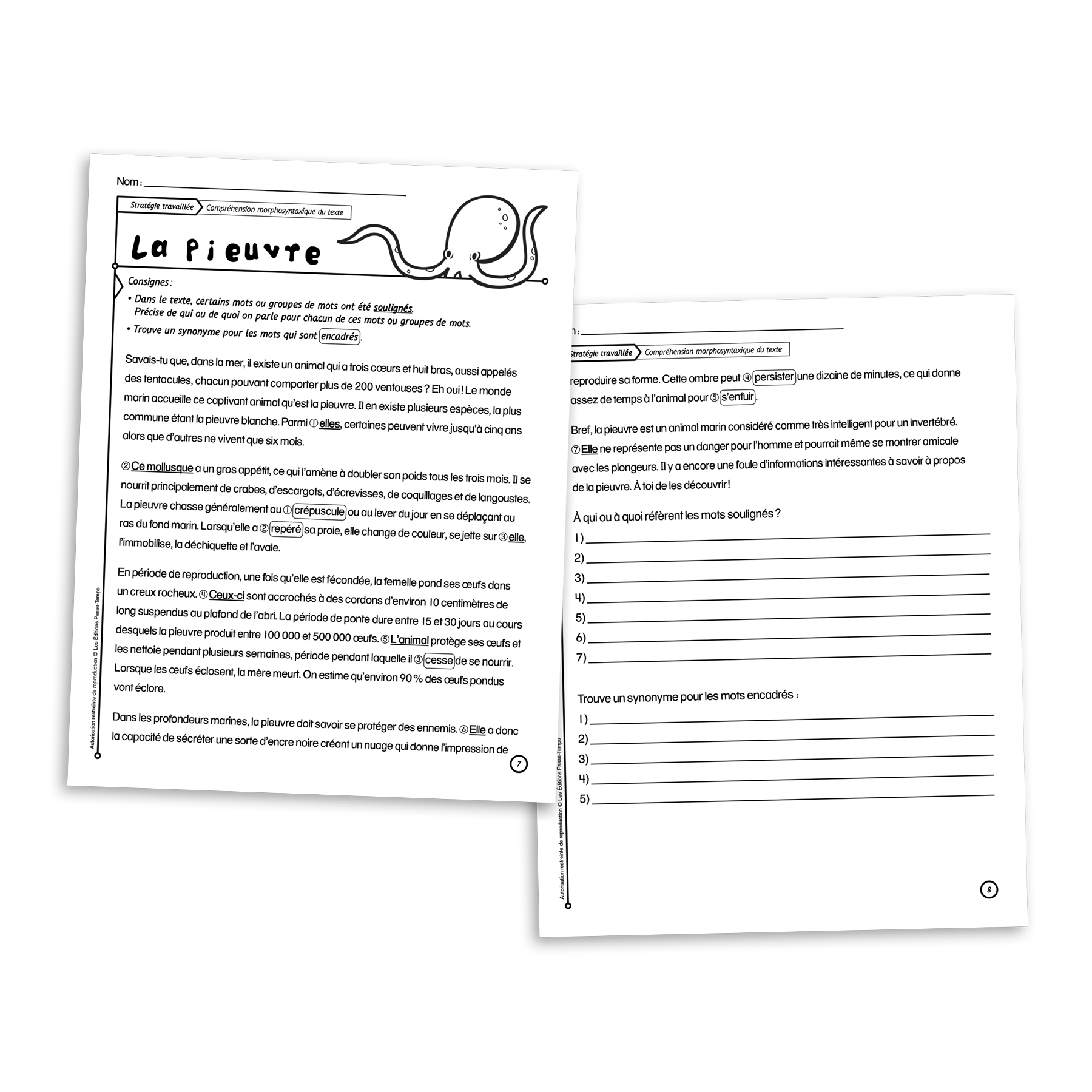 - Des fiches reproductibles pour chacun des textes