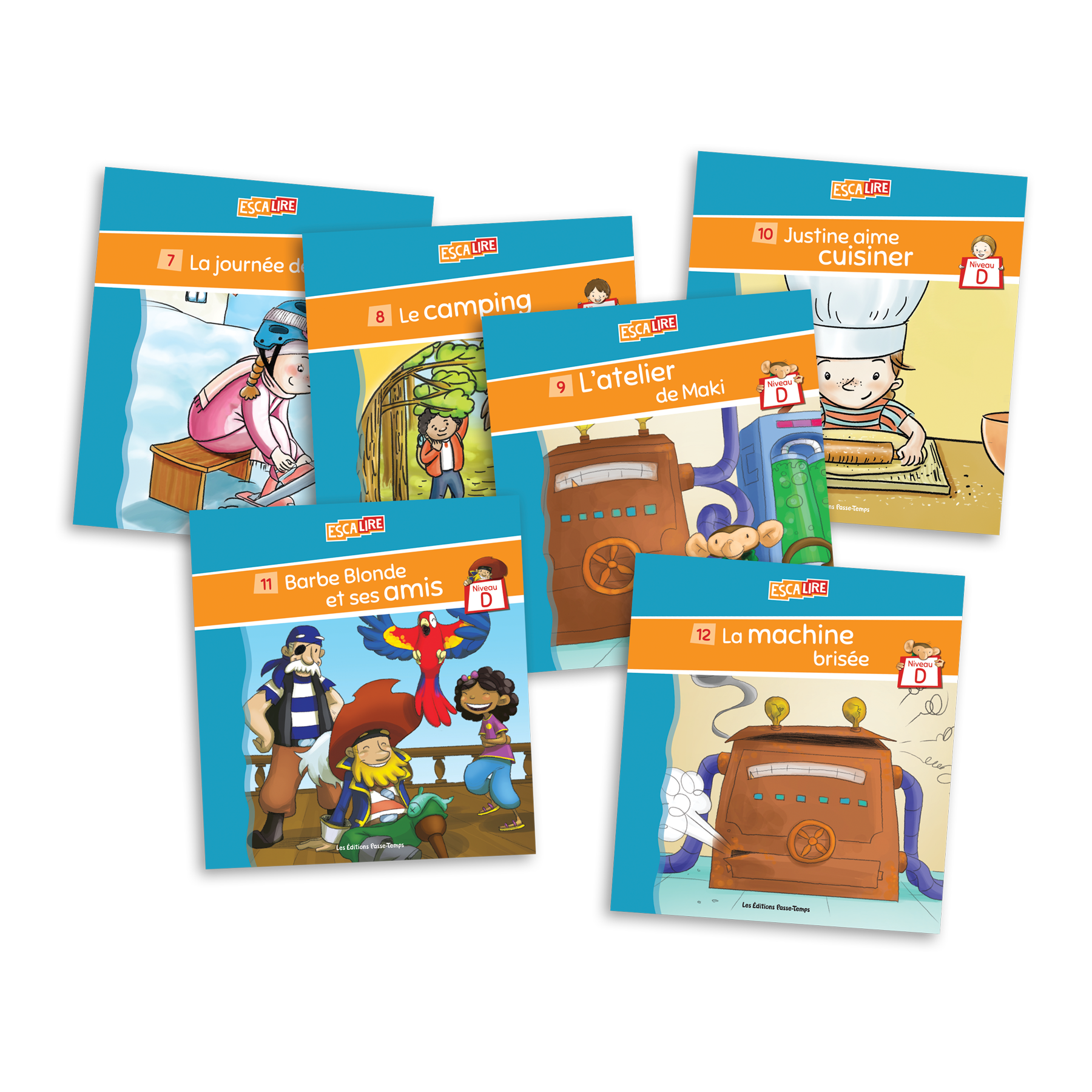 Cette série de la collection Escalire comprend les livres 7 à 12 du niveau D, qui s’adresse aux élèves de 1re année du primaire selon l’échelle perfectionnée de Fountas et Pinnell.