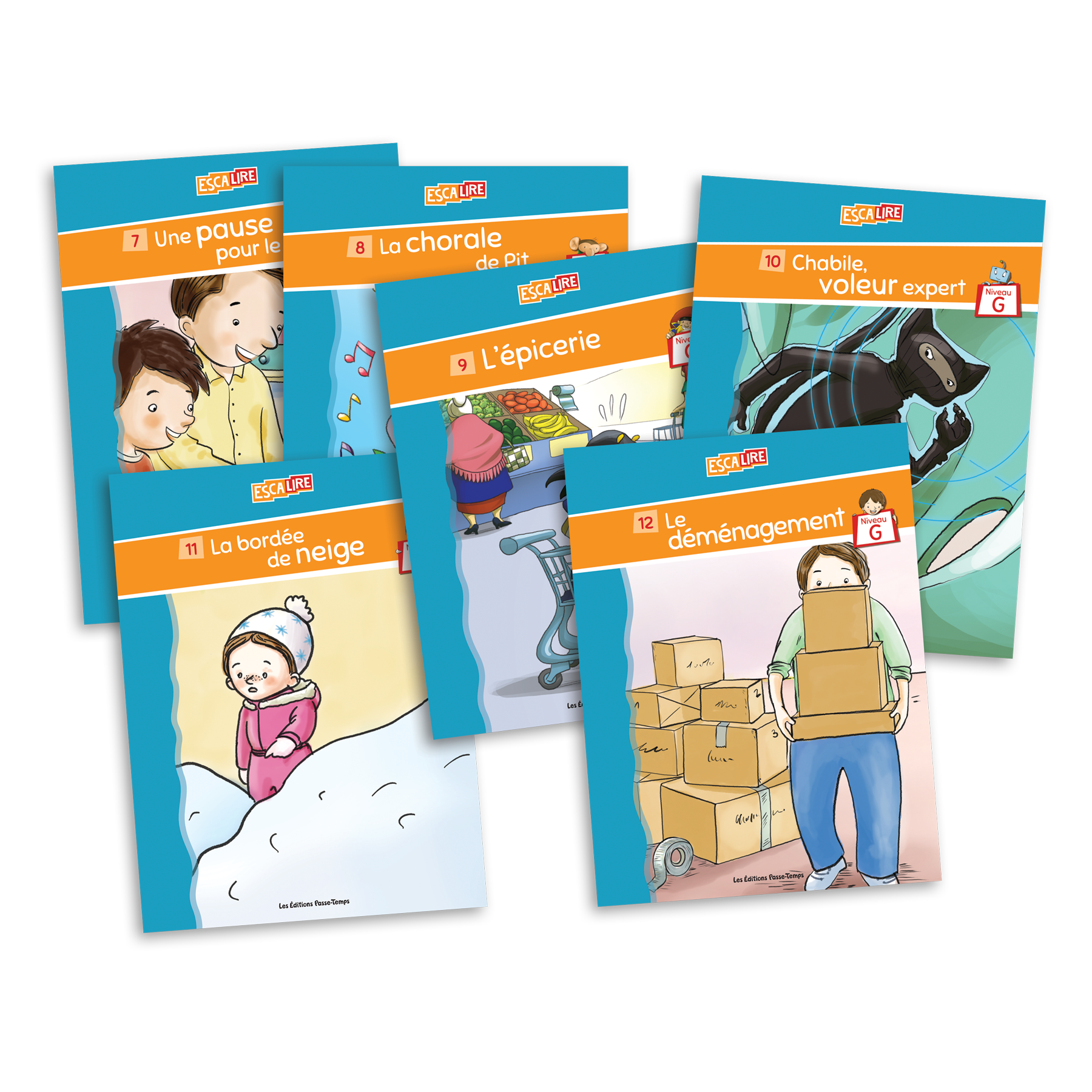Cette série de la collection Escalire comprend les livres 7 à 12 du niveau G, qui s’adresse aux élèves de 1re et de 2e année du primaire selon l’échelle perfectionnée de Fountas et Pinnell.