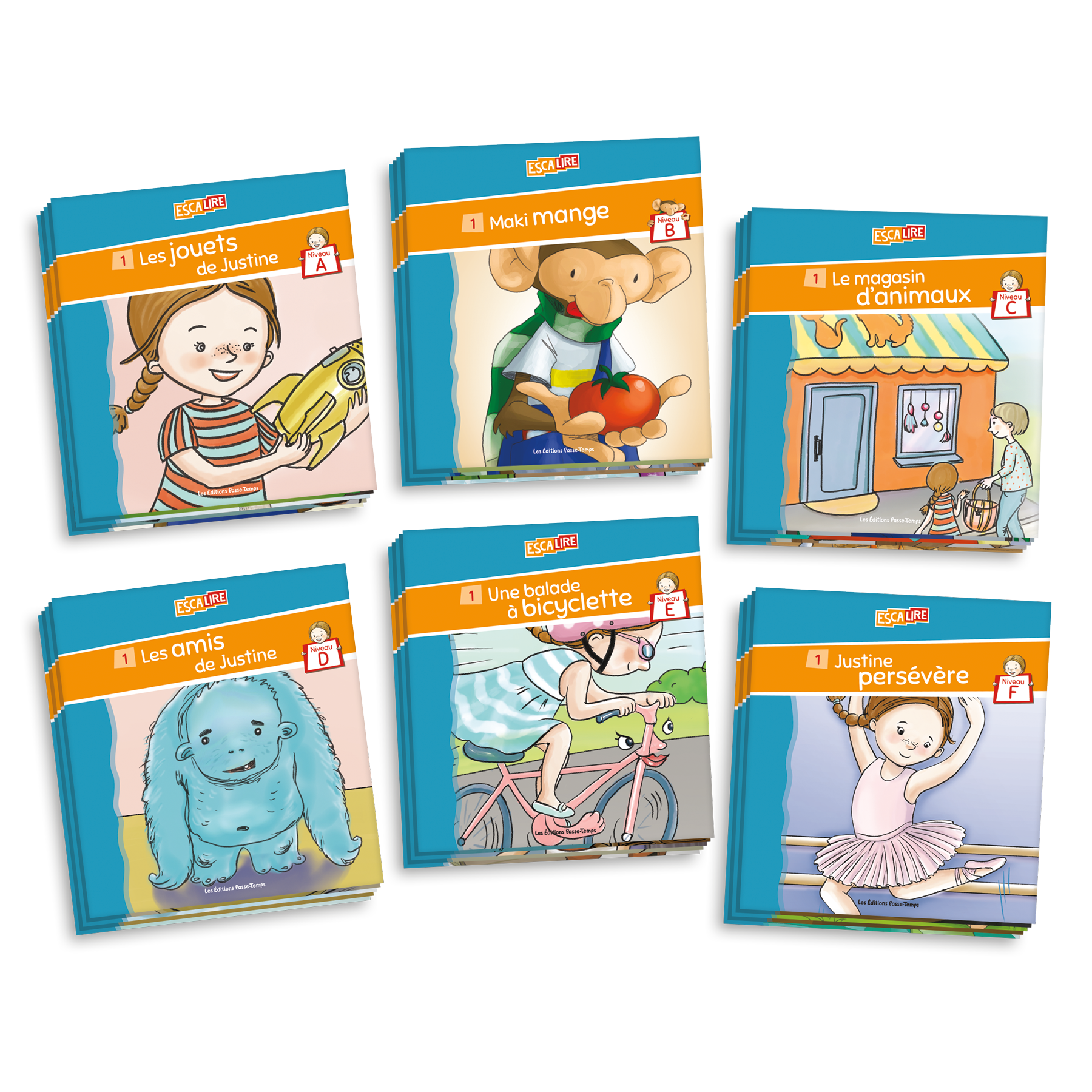 Les 84 livres de la collection Escalire pour la 1re année (niveaux A à F) en version électronique* sur une clé USB.