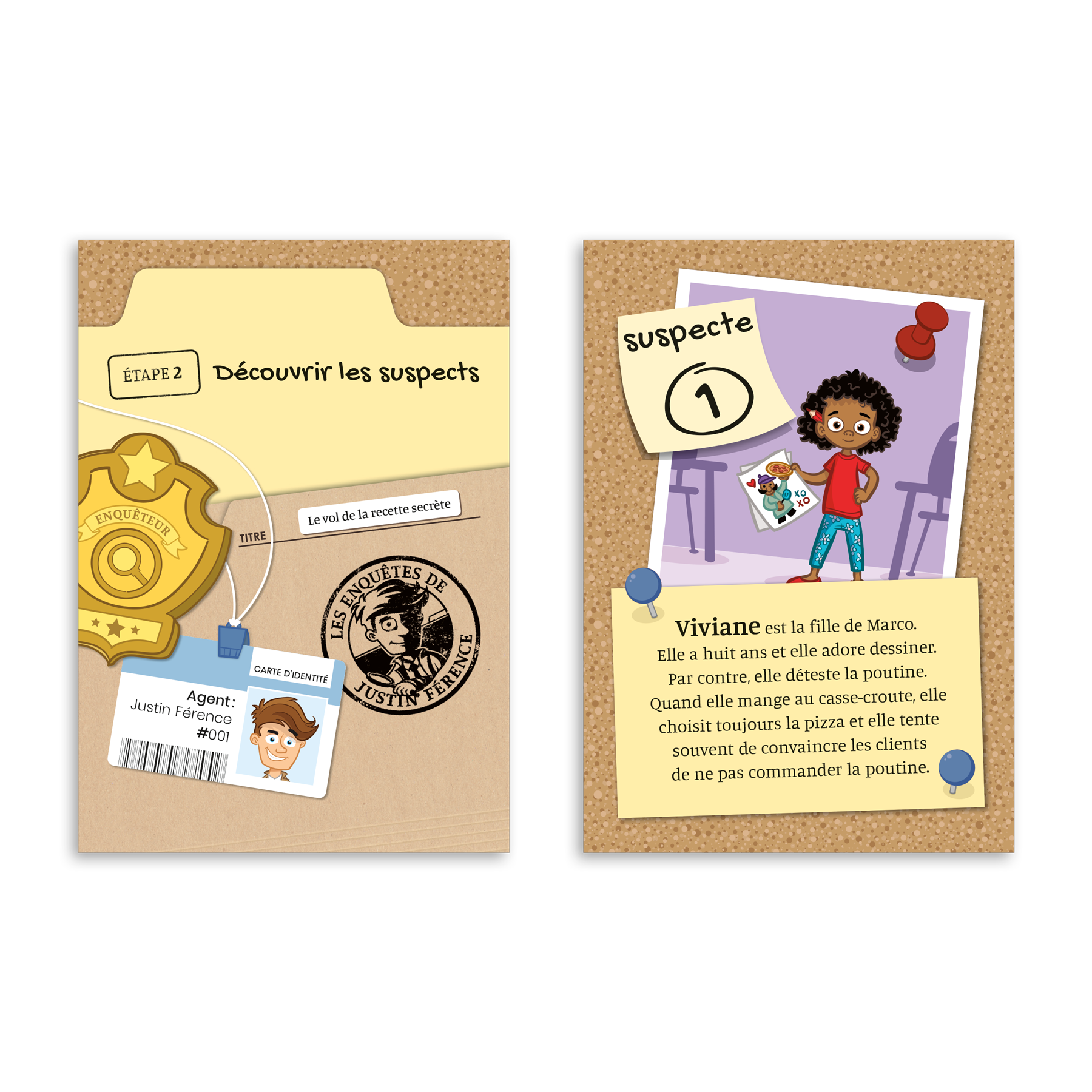 Justin Férence : Le vol de la recette secrète est un jeu d’enquête destiné aux élèves de 4e année du primaire ciblant l’habileté à faire des inférences et à dégager l’information importante dans un texte. L’enquête est composée de 10 étapes et peut être réalisée en groupe-classe ou en atelier sur plusieurs périodes de classe.