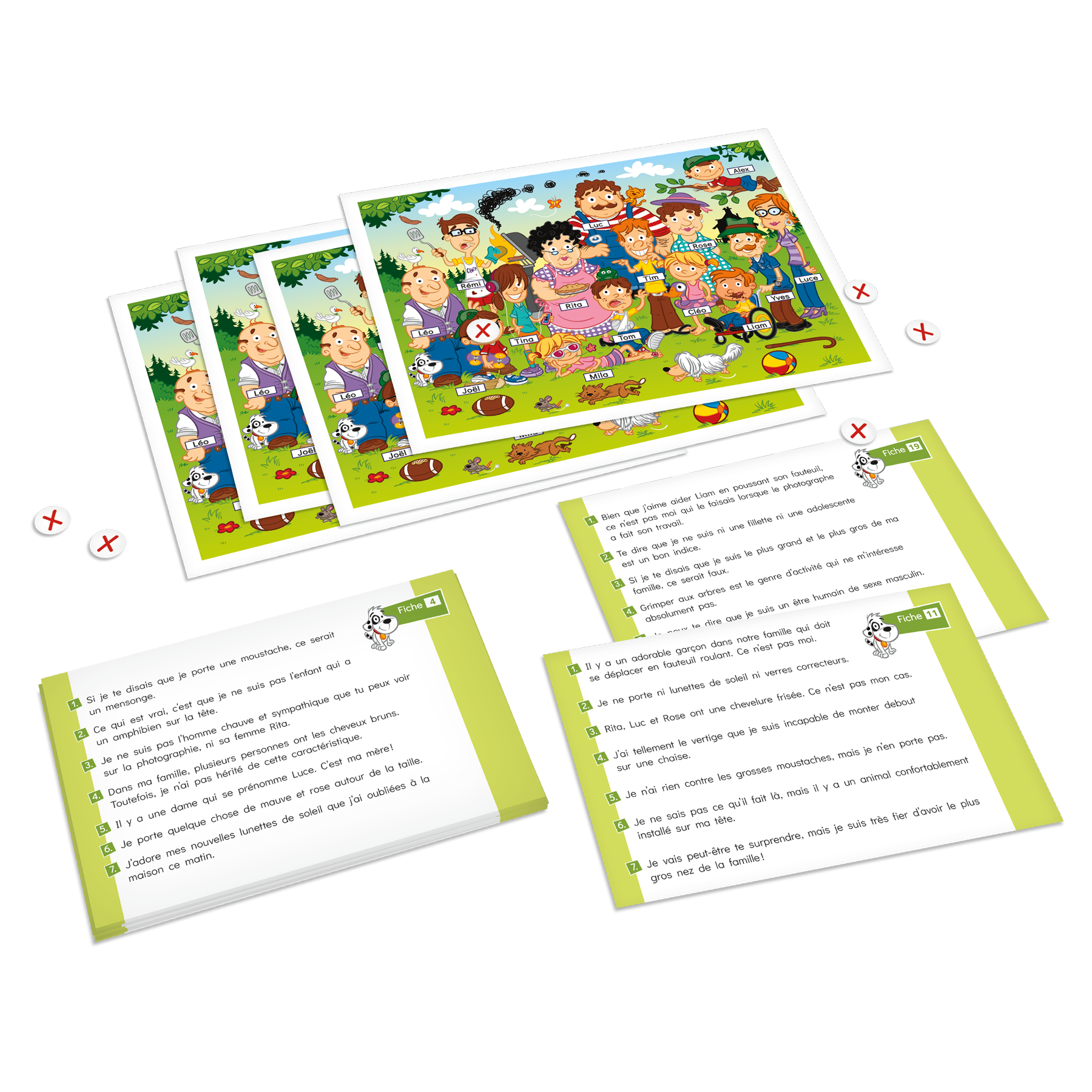 La photo de famille est un jeu de lecture destiné aux élèves du 2e cycle du primaire ciblant l’habileté à faire des inférences. Le joueur doit identifier des personnages à partir des descriptions fournies.