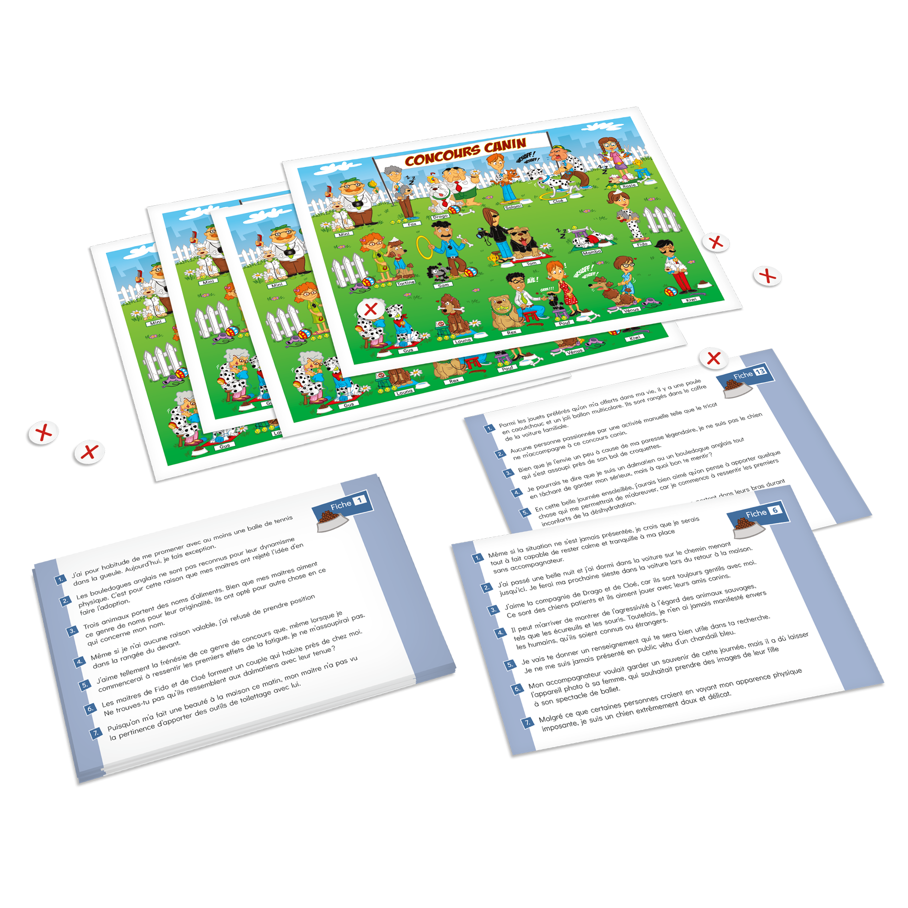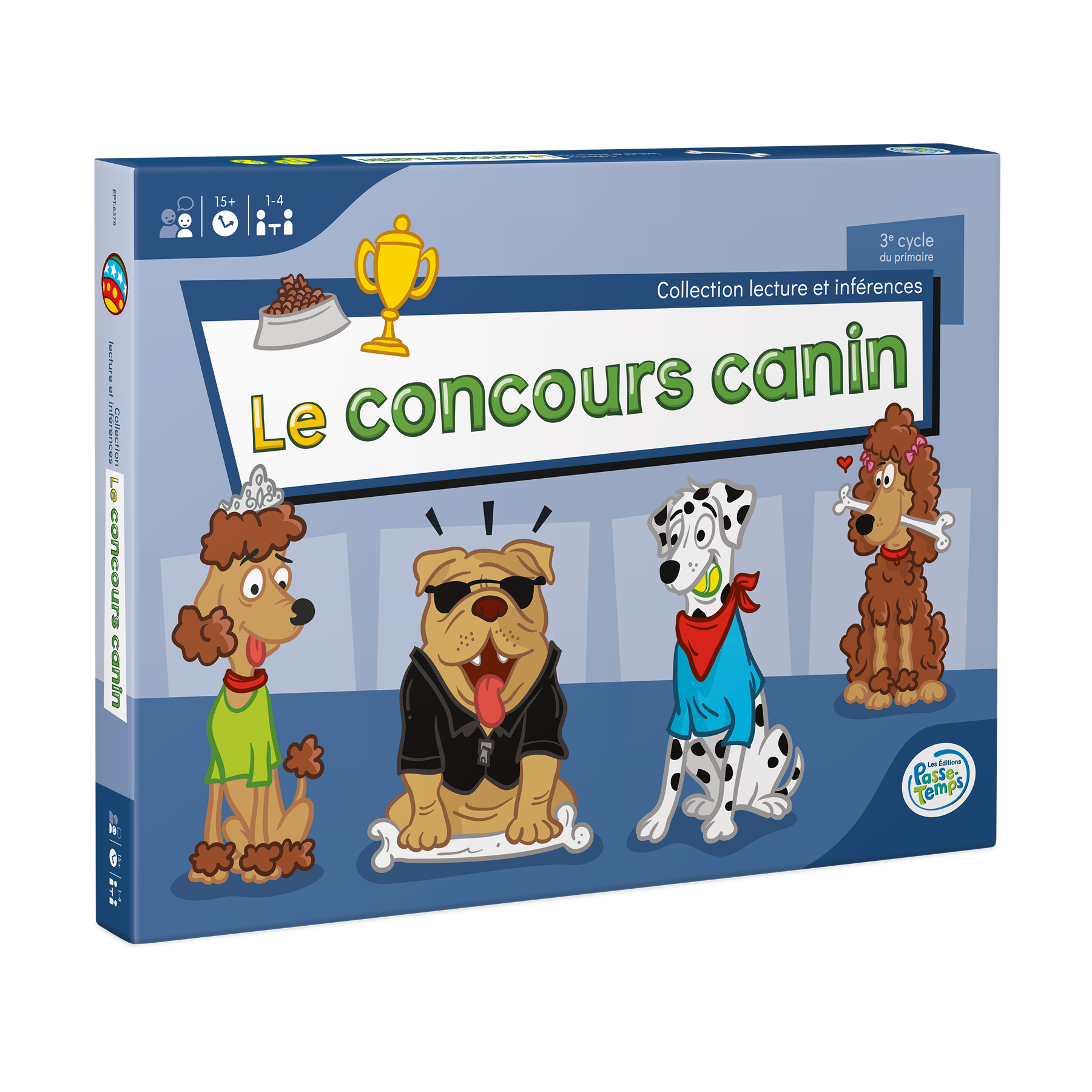 Le concours canin est un jeu de lecture destiné aux élèves du 3e cycle du primaire ciblant l’habileté à faire des inférences. Le joueur doit identifier des personnages à partir des descriptions fournies.