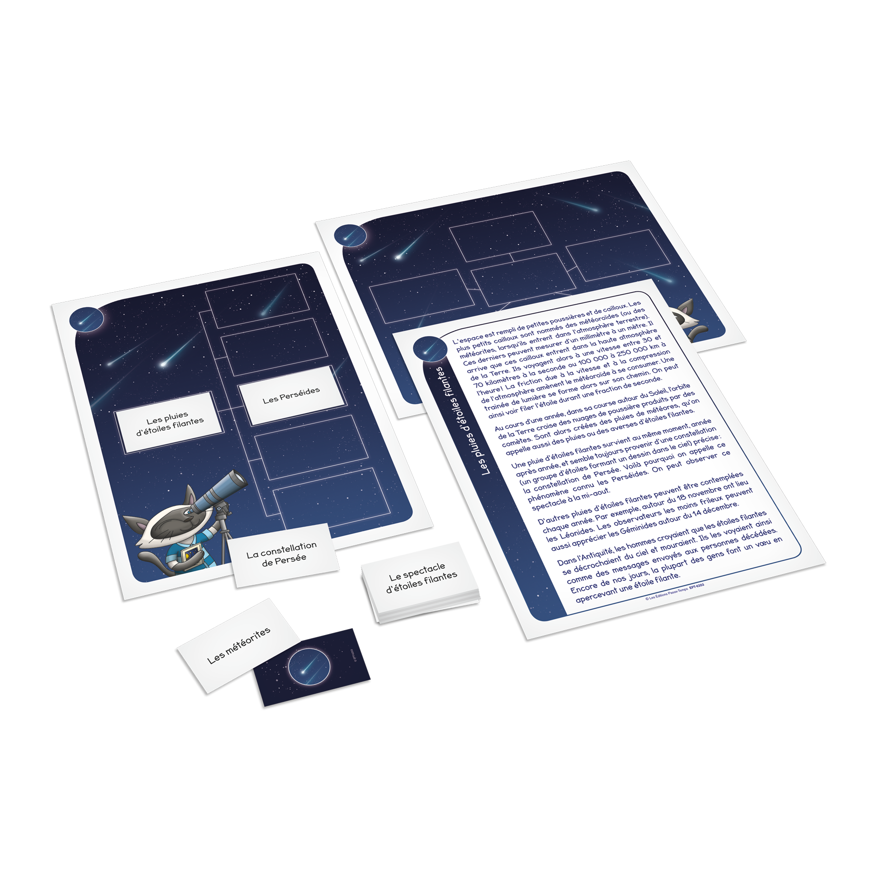 Conçu pour 1 à 4 joueurs, le jeu comprend 8 textes. Chacun d’eux est associé à deux propositions de schémas dans lesquels les joueurs doivent placer des cartes-résumés. Ces cartes incluent des intrus qui ne correspondent pas aux idées principales du texte. Ainsi, les joueurs doivent sélectionner les cartes qui résument le mieux chaque partie du texte et laisser de côté les informations qui, bien que présentes dans le texte, ne permettent pas d’en avoir une compréhension globale.