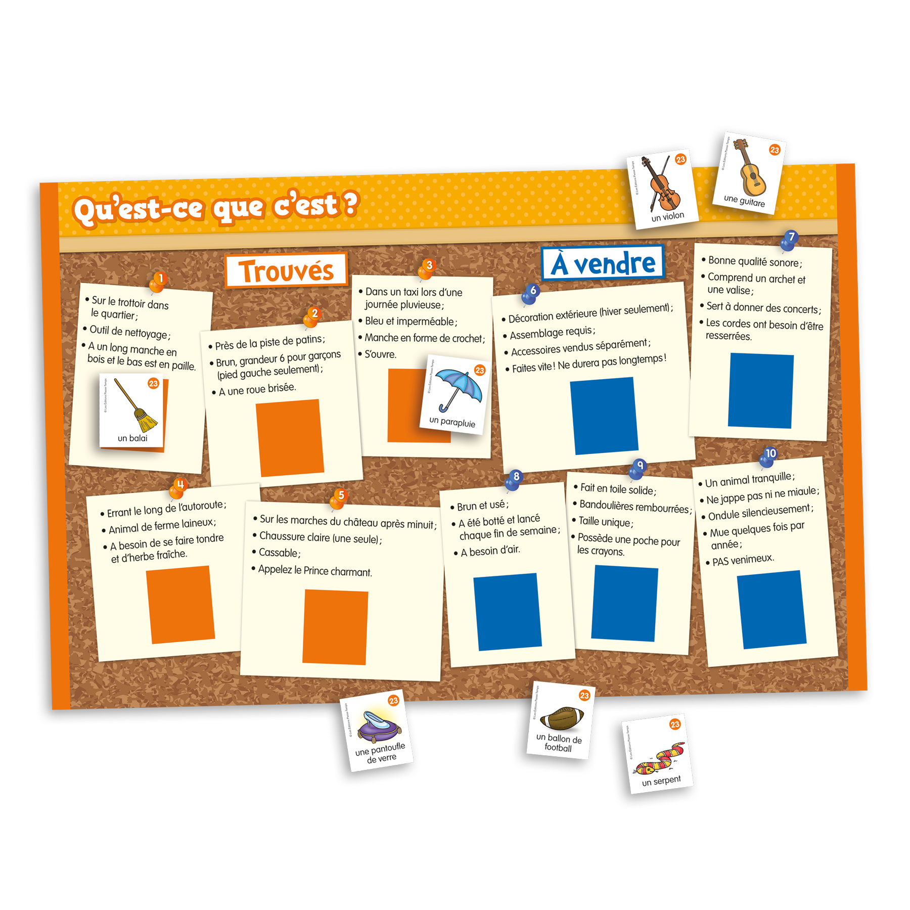 Chaque trousse comprend 36 planches de jeux différentes qui permettent aux élèves de travailler de manière autonome ou en équipes de deux. Les jeux peuvent être accompagnés d'une feuille reproductible à insérer dans le port folio. De plus, le guide de l'enseignant permet d'assigner les jeux aux élèves et de consigner leur progression. Vos apprenants pourront même se corriger de façon autonome en utilisant nos trousses ludiques!
