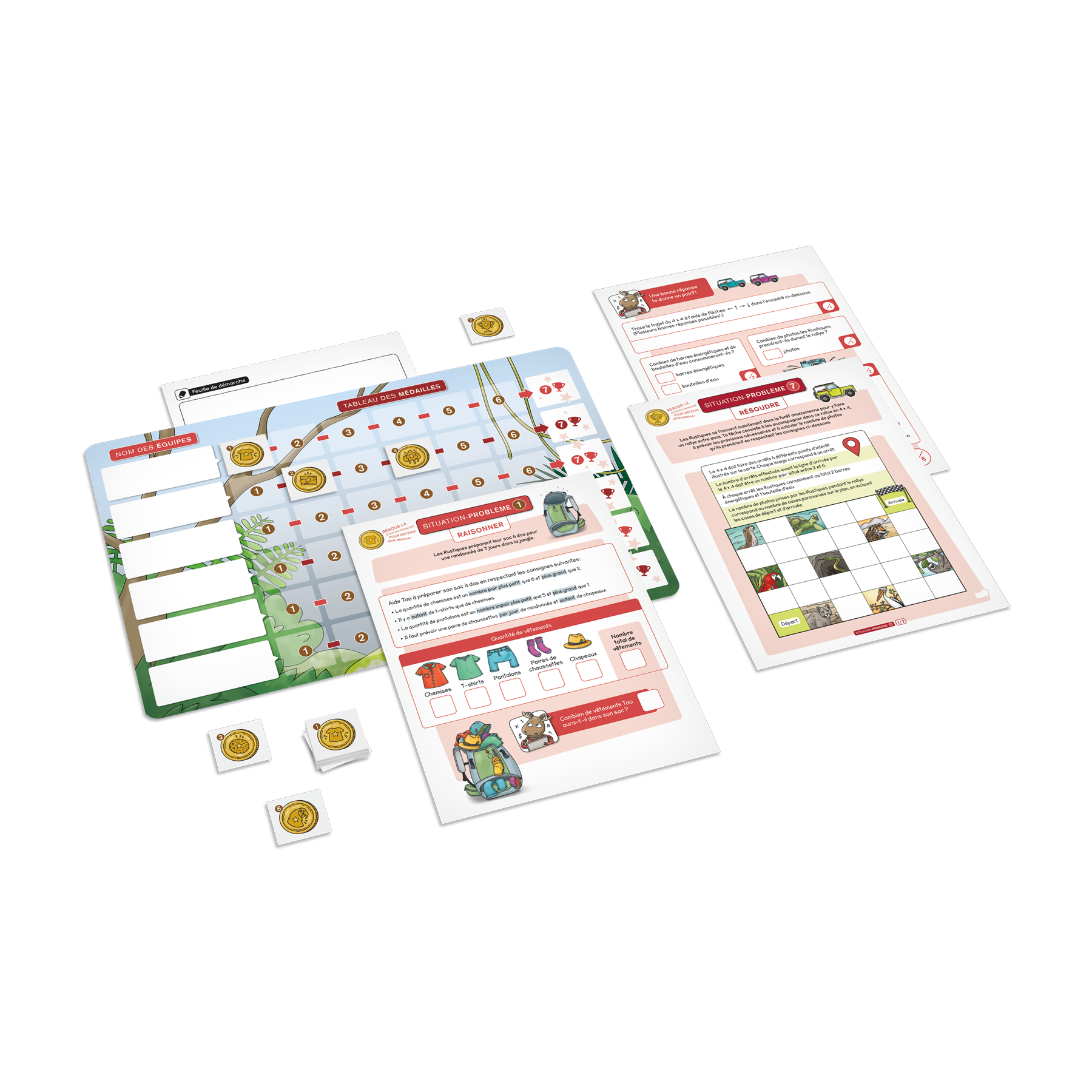 Conçu pour être réalisé seul ou en équipe sur plusieurs périodes, le jeu comprend une fiche de progression ainsi que 42 badges qui permettent de suivre la progression des joueurs dans la réalisation des situations-problèmes.