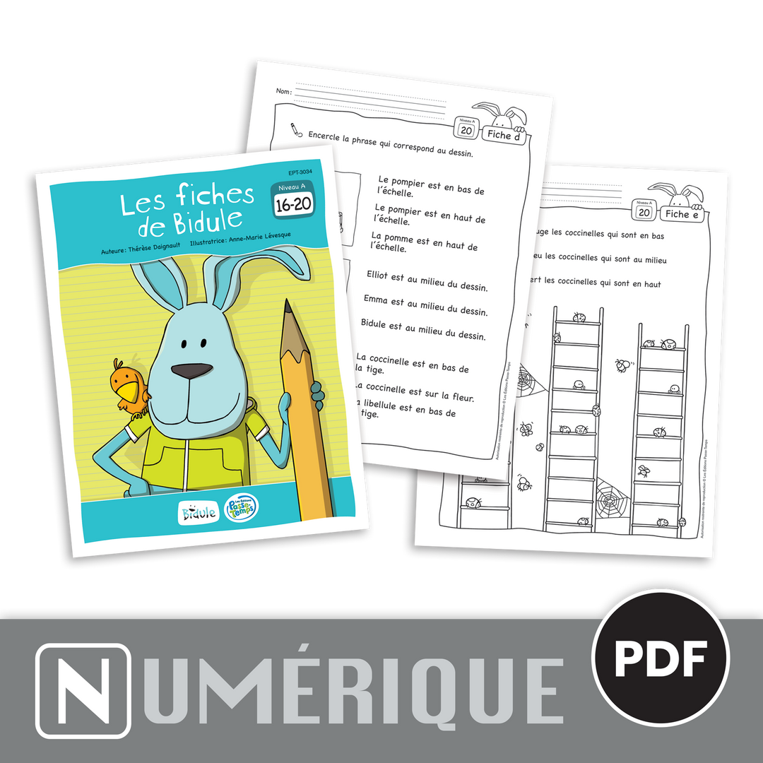 Les fiches de Bidule - Niveau A - 16 à 20 - Version numérique