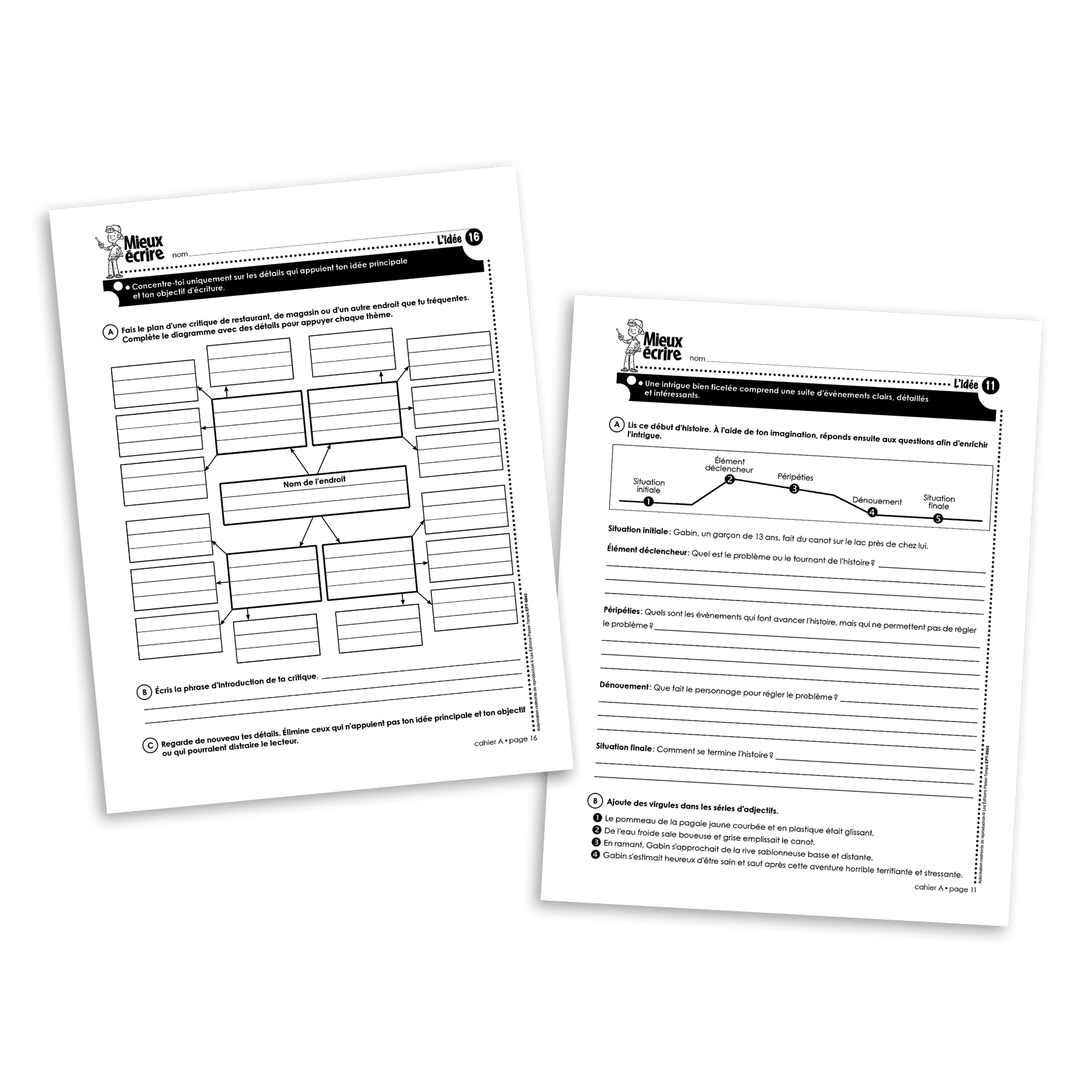 Mieux écrire est une série de cahiers reproductibles pour aider les élèves à devenir plus habiles et autonomes à rédiger différents types de textes. Pour chaque année scolaire, deux cahiers sont offerts (A et B), divisés selon les éléments d’écriture qui y sont abordés. Le cahier A de la série Mieux écrire en 1re secondaire cible l’idée et la structure des textes.
