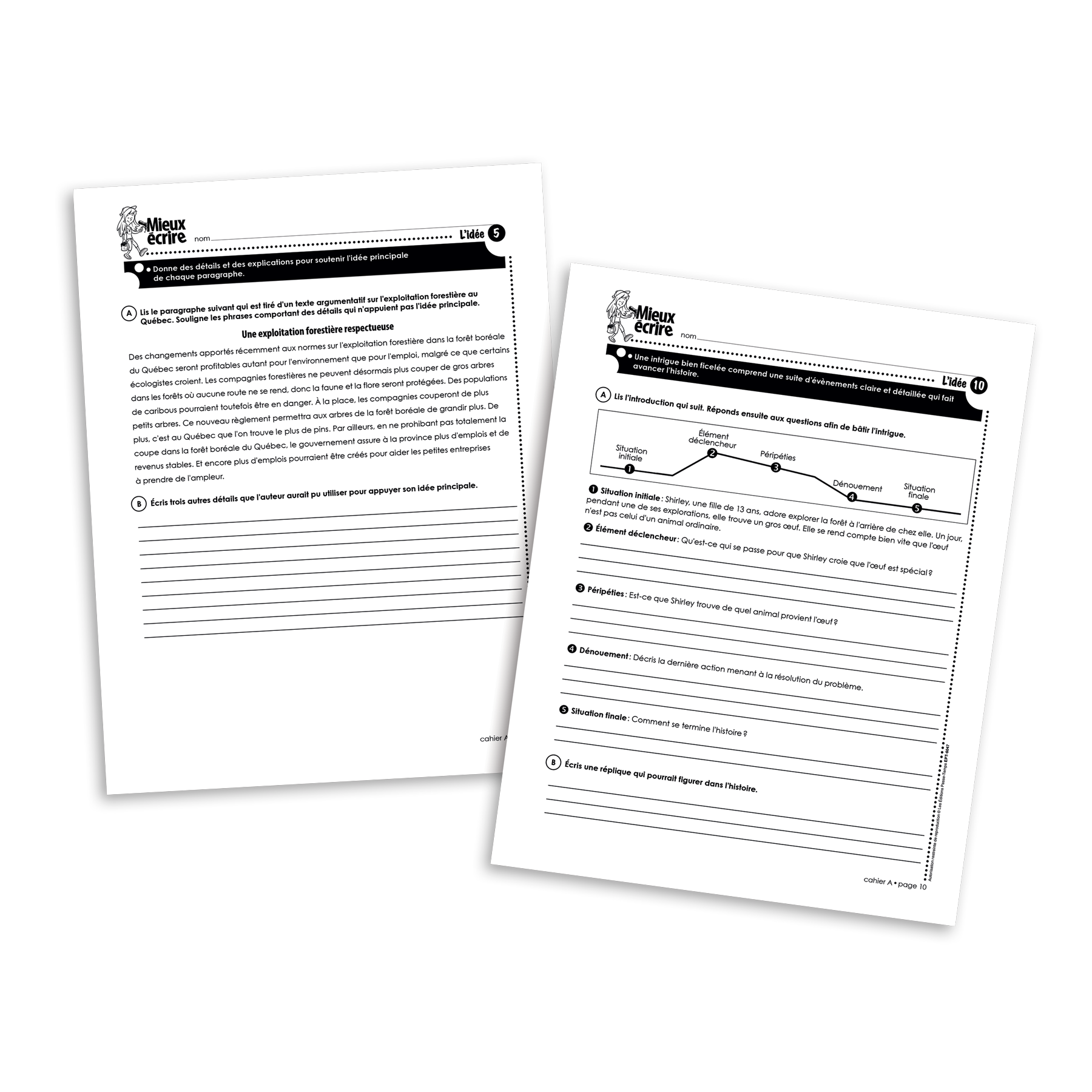 Mieux écrire est une série de cahiers reproductibles pour aider les élèves à devenir plus habiles et autonomes à rédiger différents types de textes. Pour chaque année scolaire, deux cahiers sont offerts (A et B), divisés selon les éléments d’écriture qui y sont abordés. Le cahier A de la série Mieux écrire en 2e secondaire cible l’idée et la structure des textes.