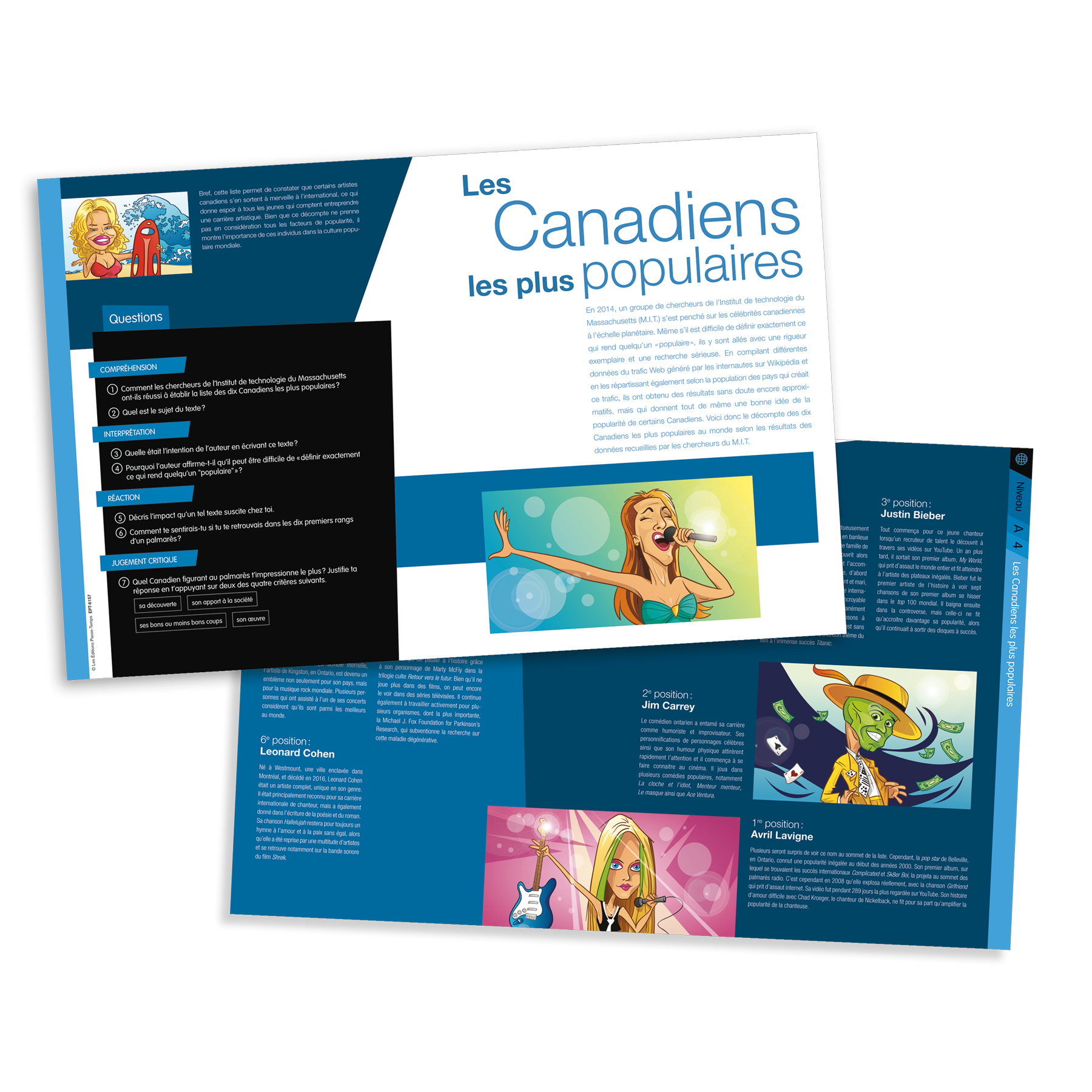 Chaque fiche comporte plusieurs questions regroupées selon le type de question (compréhension, réaction, interprétation, jugement critique). La durée des fiches (longueur du texte et des questions) a été conçue pour que les fiches puissent se réaliser en une période (pour la plupart des élèves). La boite inclut les fiches imprimées (carton laminé) et également la version PDF.