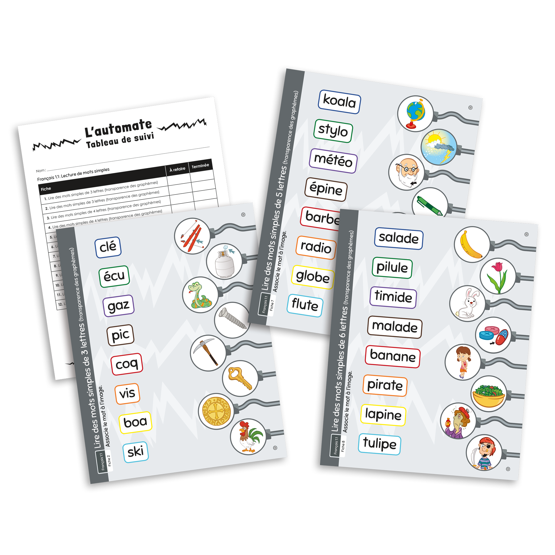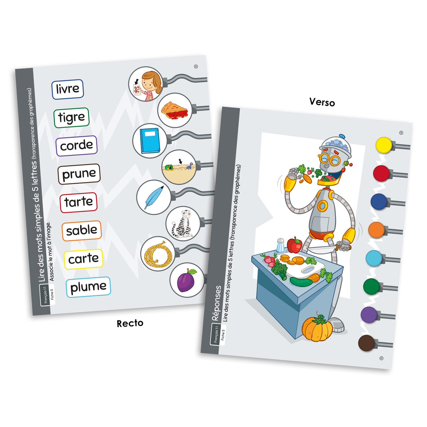 L’ensemble comprend 12 fiches de jeu qui portent sur la lecture :