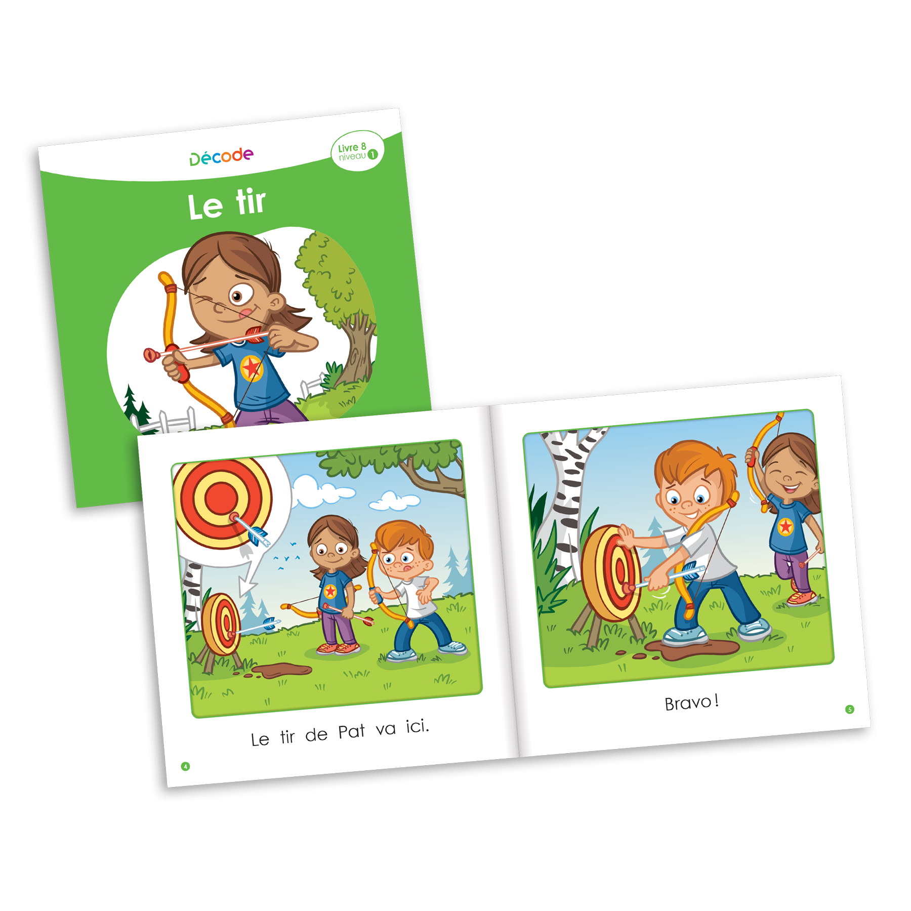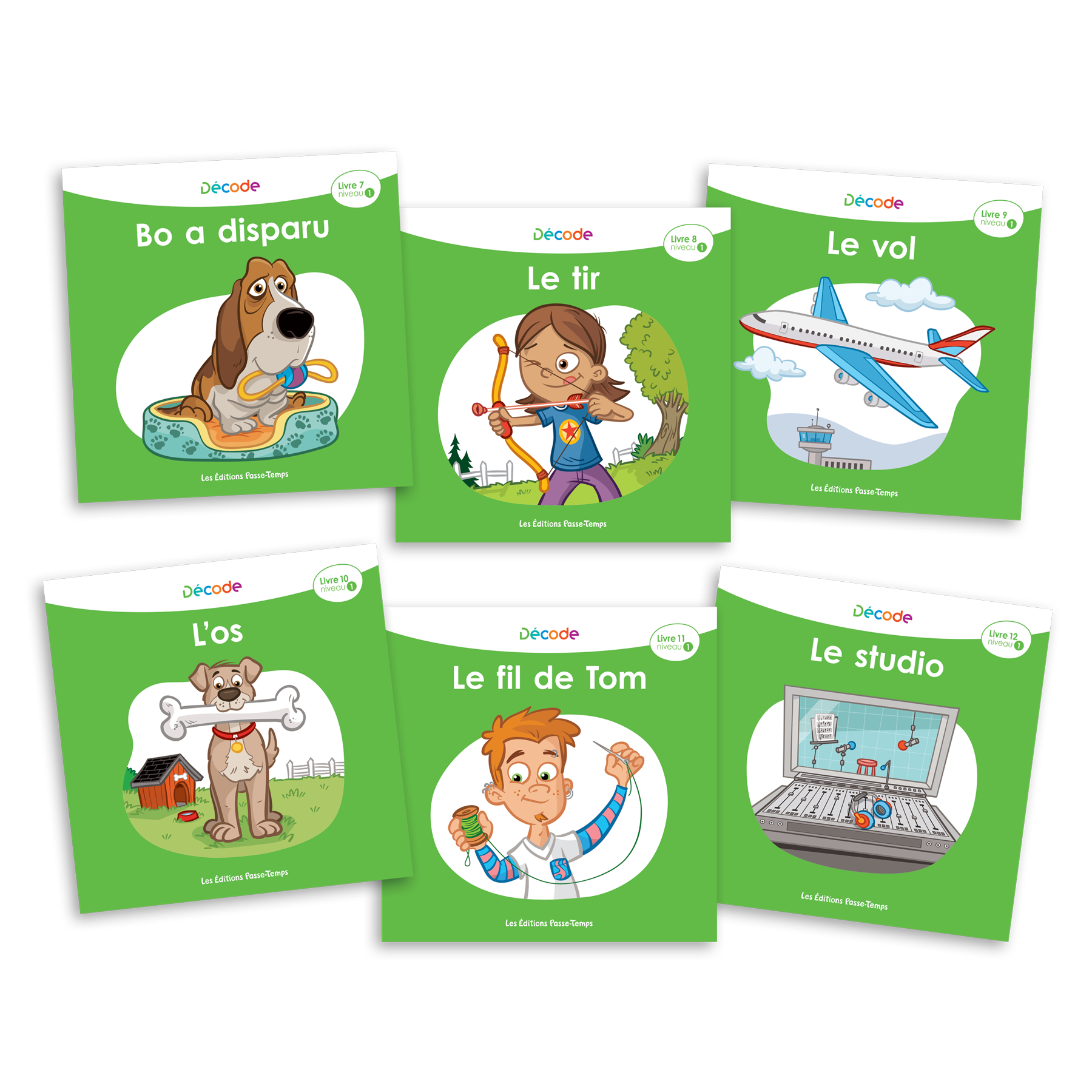 Décode est une collection de livres gradués spécialement conçue pour accompagner pas à pas le lecteur dans son apprentissage du décodage. Elle propose 6 niveaux de 12 livres qui incluent de façon progressive les correspondances graphèmes-phonèmes et les particularités de la langue française. Les 72 livres gradués permettent ainsi aux lecteurs débutants de réinvestir petit à petit leurs apprentissages dans un contexte de lecture authentique et amusant qui correspond à leur niveau d’habileté. La série 1 Introduction comprend les livres 1 à 6 alors que la série 2 Consolidation inclut les livres 7 à 12 de chacun des niveaux.