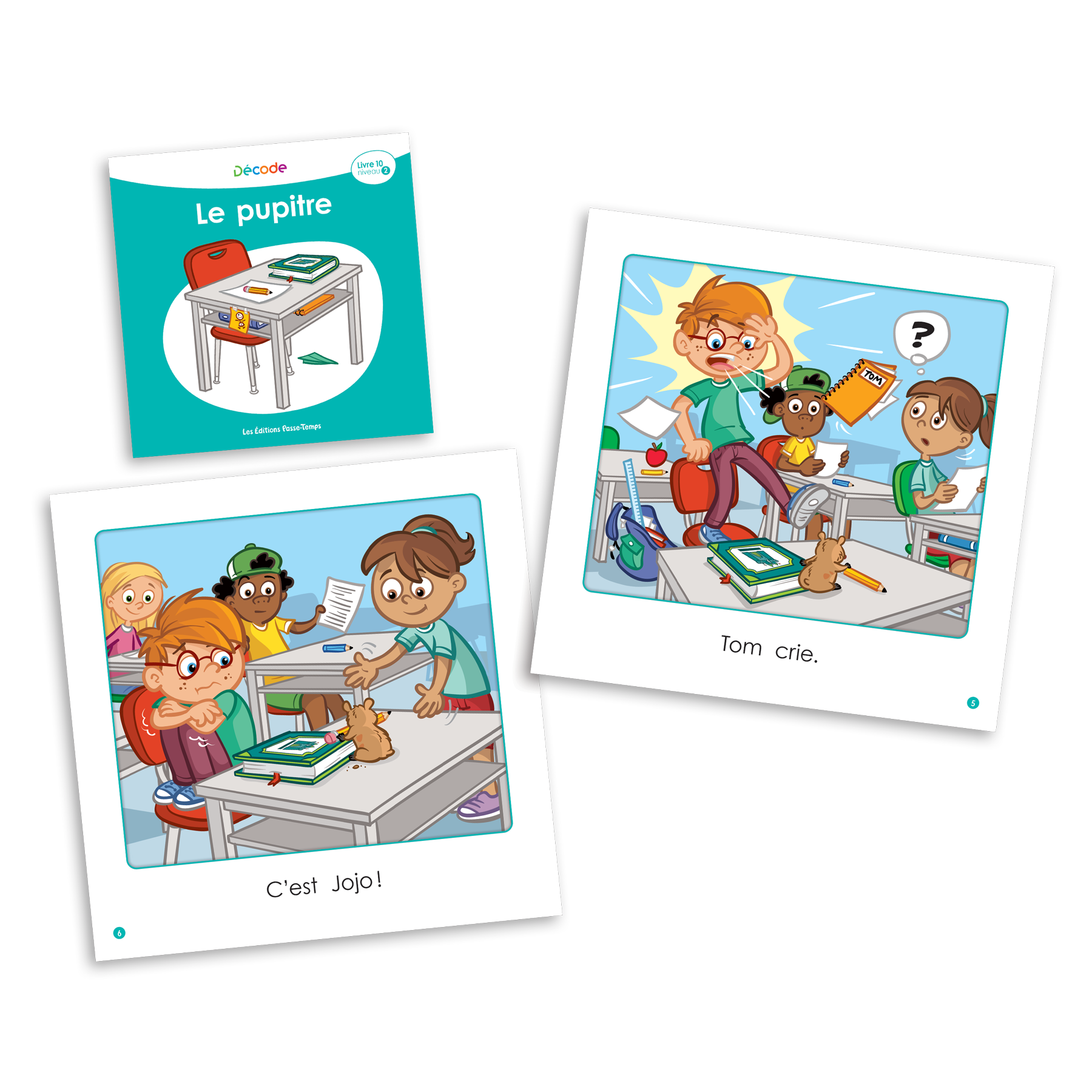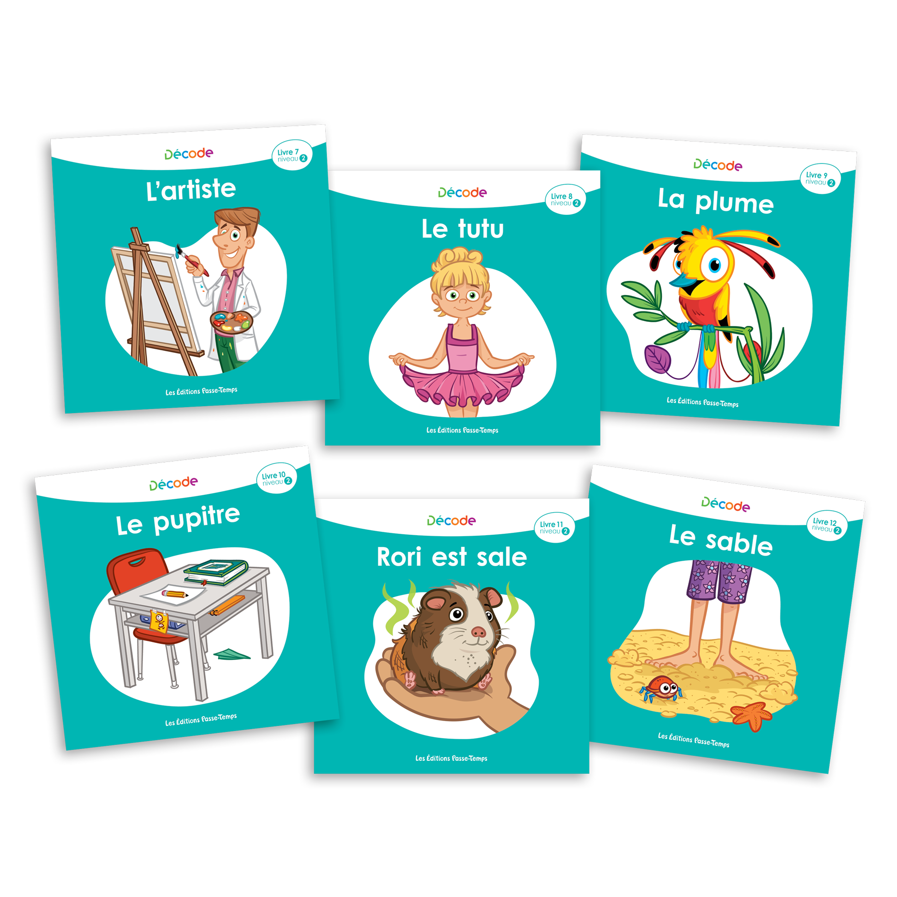 Décode est une collection de livres gradués spécialement conçue pour accompagner pas à pas le lecteur dans son apprentissage du décodage. Elle propose 6 niveaux de 12 livres qui incluent de façon progressive les correspondances graphèmes-phonèmes et les particularités de la langue française. Les 72 livres gradués permettent ainsi aux lecteurs débutants de réinvestir petit à petit leurs apprentissages dans un contexte de lecture authentique et amusant qui correspond à leur niveau d’habileté. La série 1 Introduction comprend les livres 1 à 6 alors que la série 2 Consolidation inclut les livres 7 à 12 de chacun des niveaux.