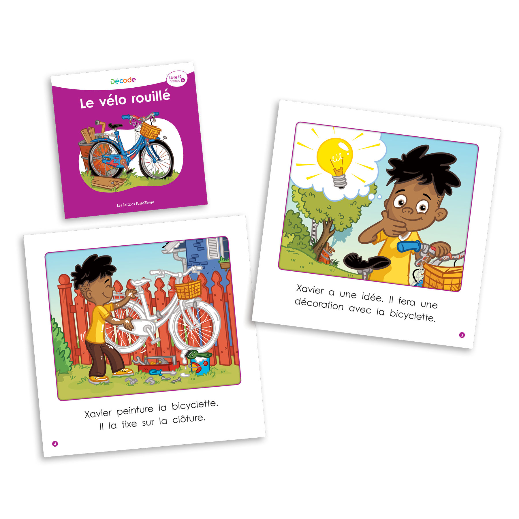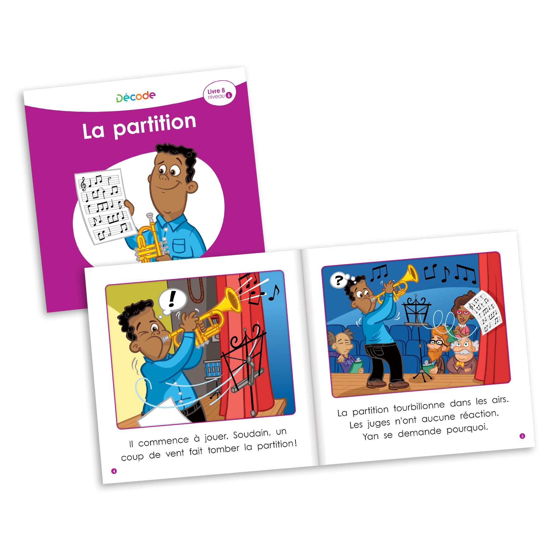 Décode est une collection de livres gradués spécialement conçue pour accompagner pas à pas le lecteur dans son apprentissage du décodage. Elle propose 6 niveaux de 12 livres qui incluent de façon progressive les correspondances graphèmes-phonèmes et les particularités de la langue française. Les 72 livres gradués permettent ainsi aux lecteurs débutants de réinvestir petit à petit leurs apprentissages dans un contexte de lecture authentique et amusant qui correspond à leur niveau d’habileté. La série 1 Introduction comprend les livres 1 à 6 alors que la série 2 Consolidation inclut les livres 7 à 12 de chacun des niveaux.