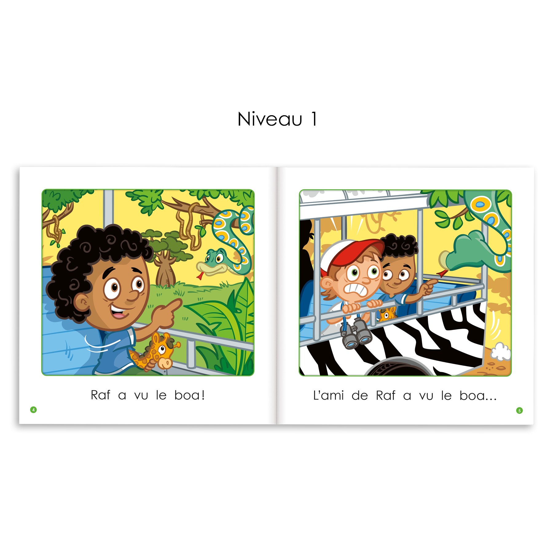 Au niveau 5, on trouve les graphèmes complexes oi, au, eau et ui, ainsi que les lettres muettes h et d (ex. : hamac, goéland). Il y a également une présence plus marquée de mots de trois ou quatre syllabes de structures variées.
