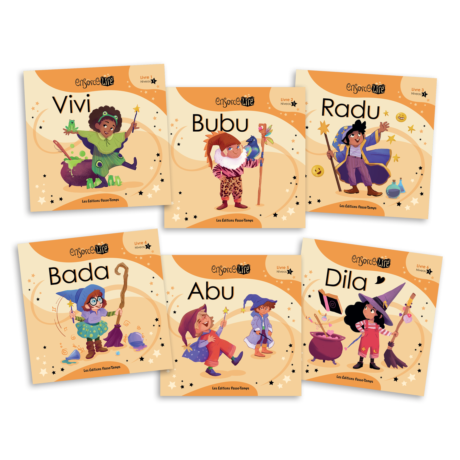 Cet ensemble comprend les 6 livrets du niveau 1 (8 pages, 15 cm X 15 cm) :
