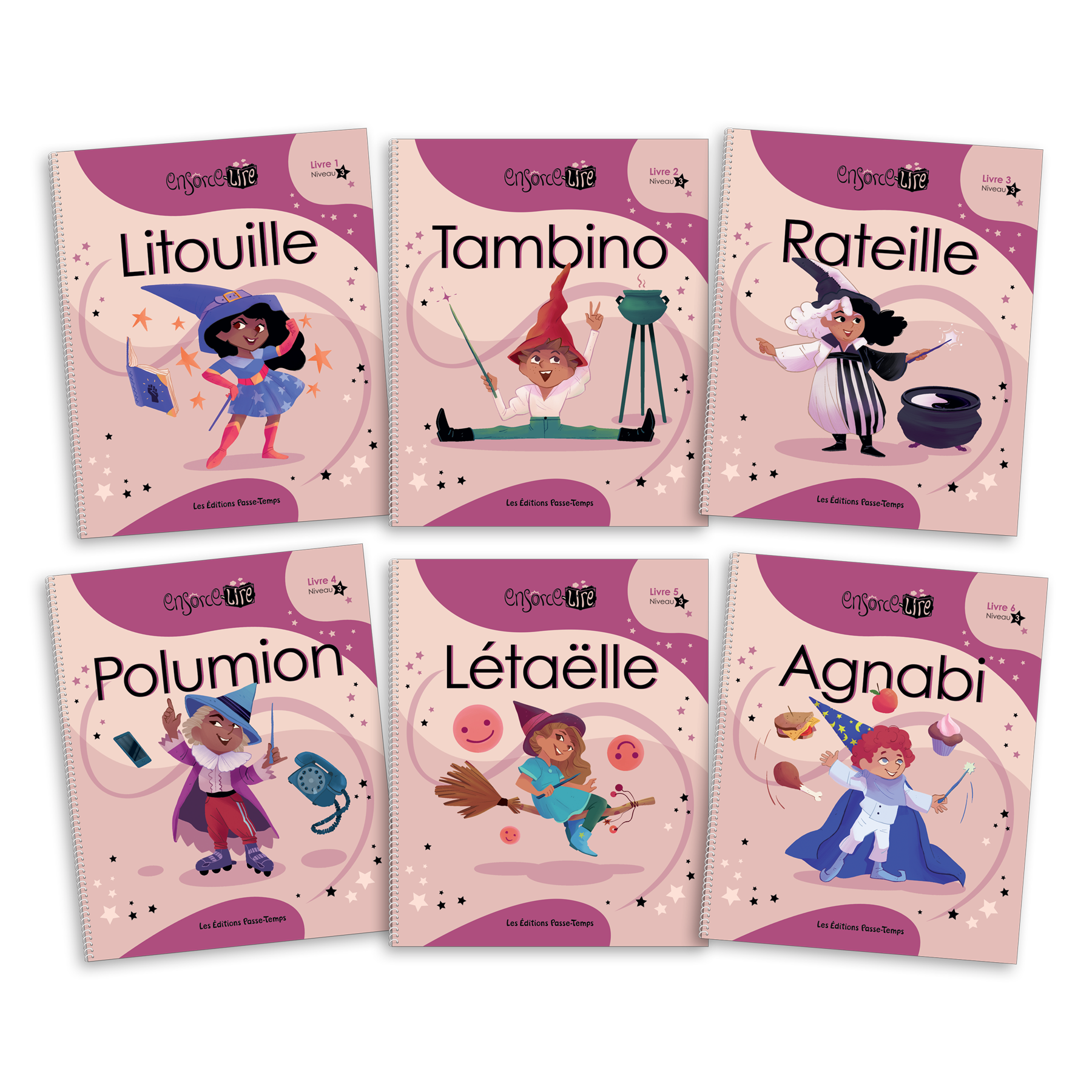 Ensorce-Lire est une collection de livres gradués et décodables qui s'adresse aux lecteurs débutants. Les personnages des livres – des sorciers et des sorcières – amènent les lecteurs à prononcer des formules magiques avec eux et à découvrir les résultats des sorts d'une page à l'autre des livres. Les textes comprennent des pseudomots (les formules magiques) ainsi que des mots faciles à décoder. La collection offre trois niveaux qui intègrent progressivement des graphèmes plus complexes.
