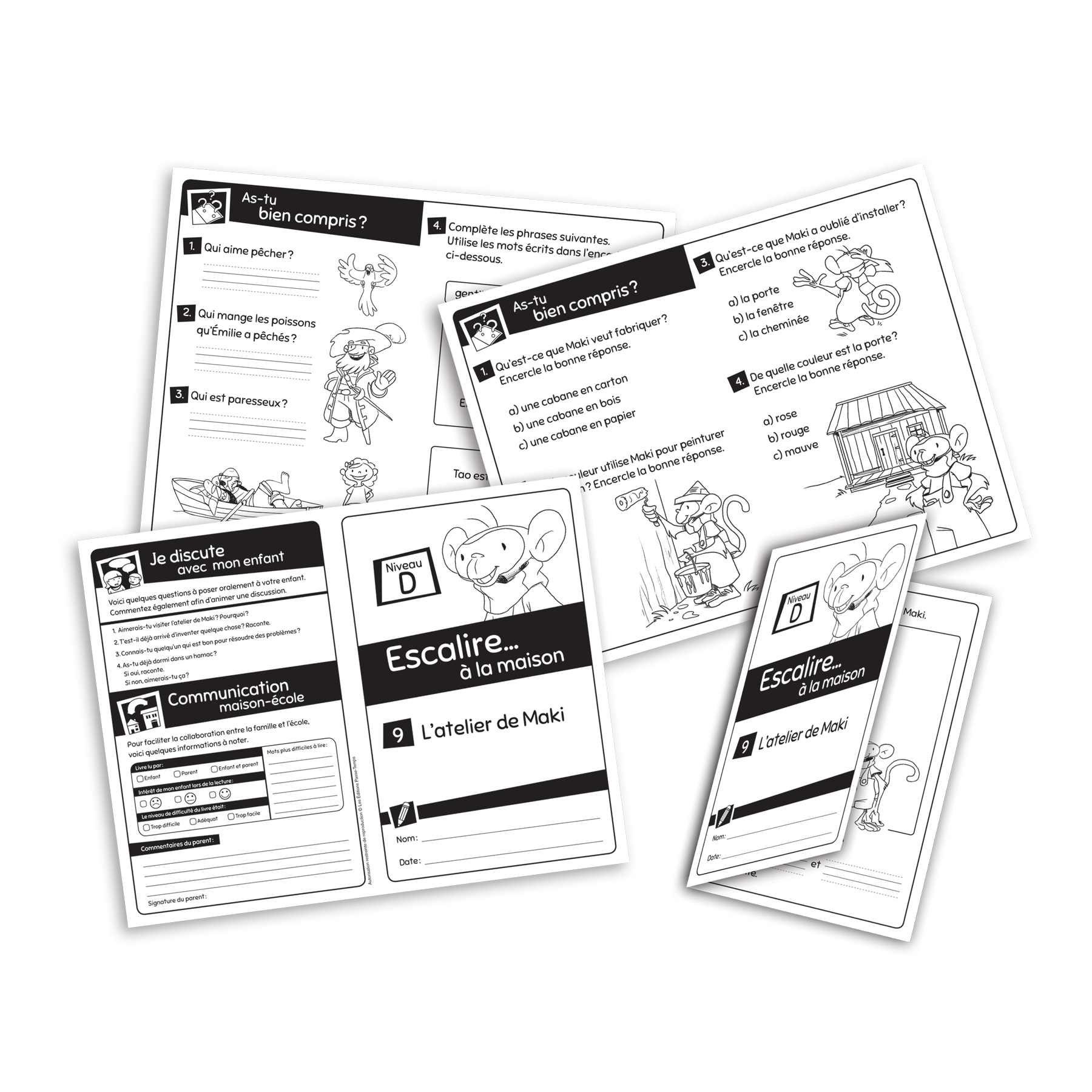 Chaque cahier contient une fiche reproductible (recto-verso) pour tous les livres des niveaux ciblés. Chaque fiche contient des activités de compréhension de lecture, mais également une section favorisant la communication avec les parents.