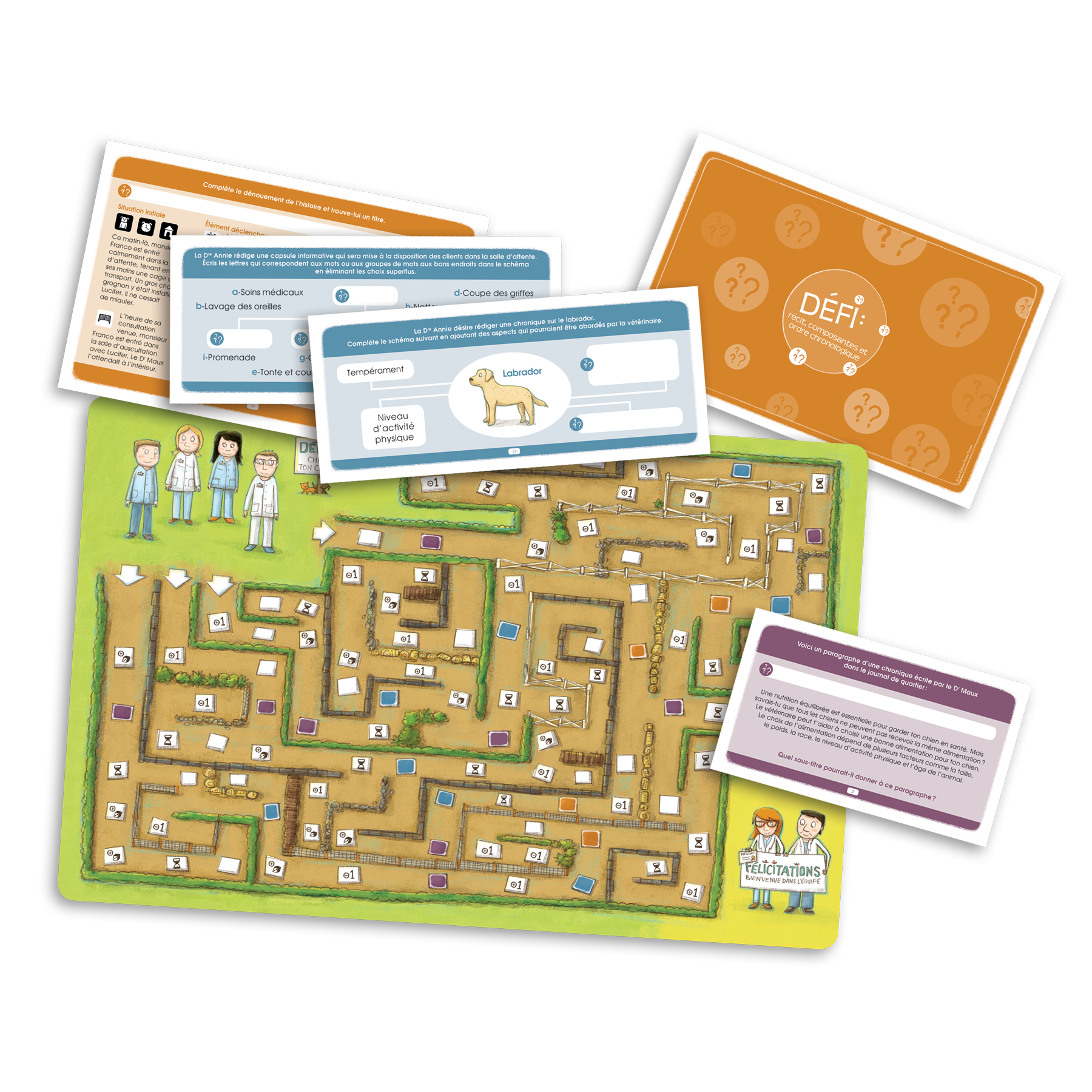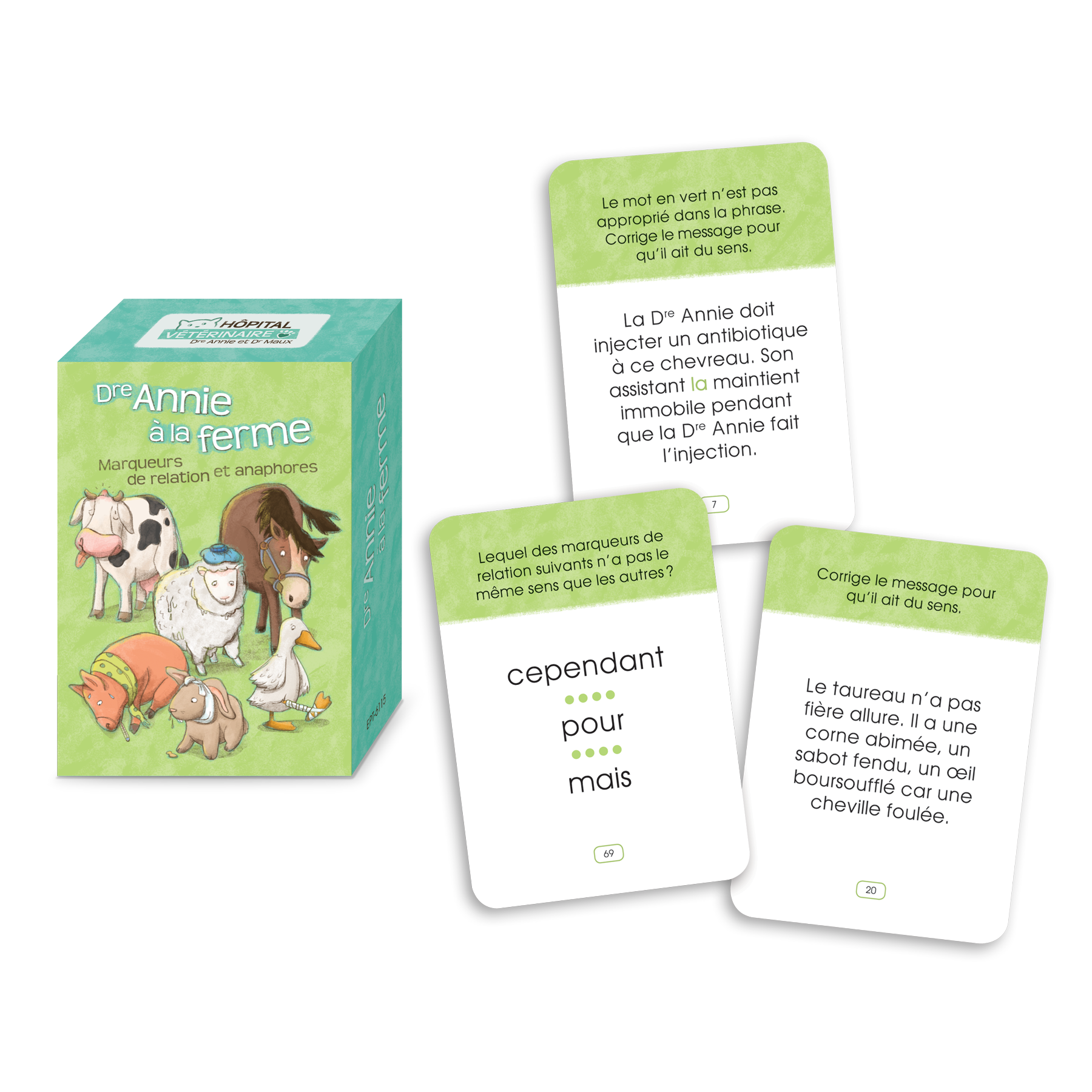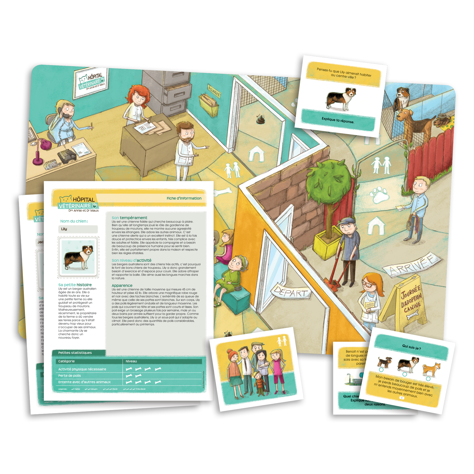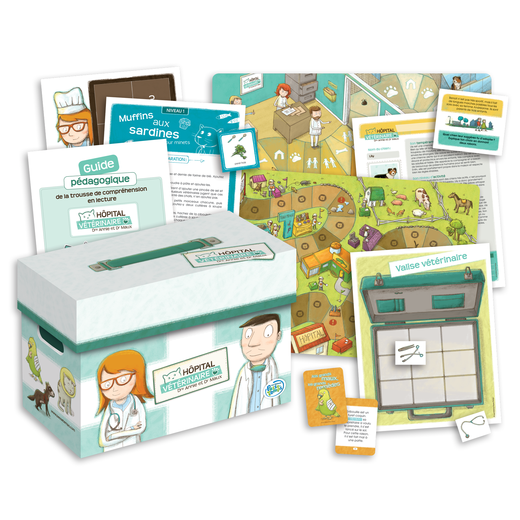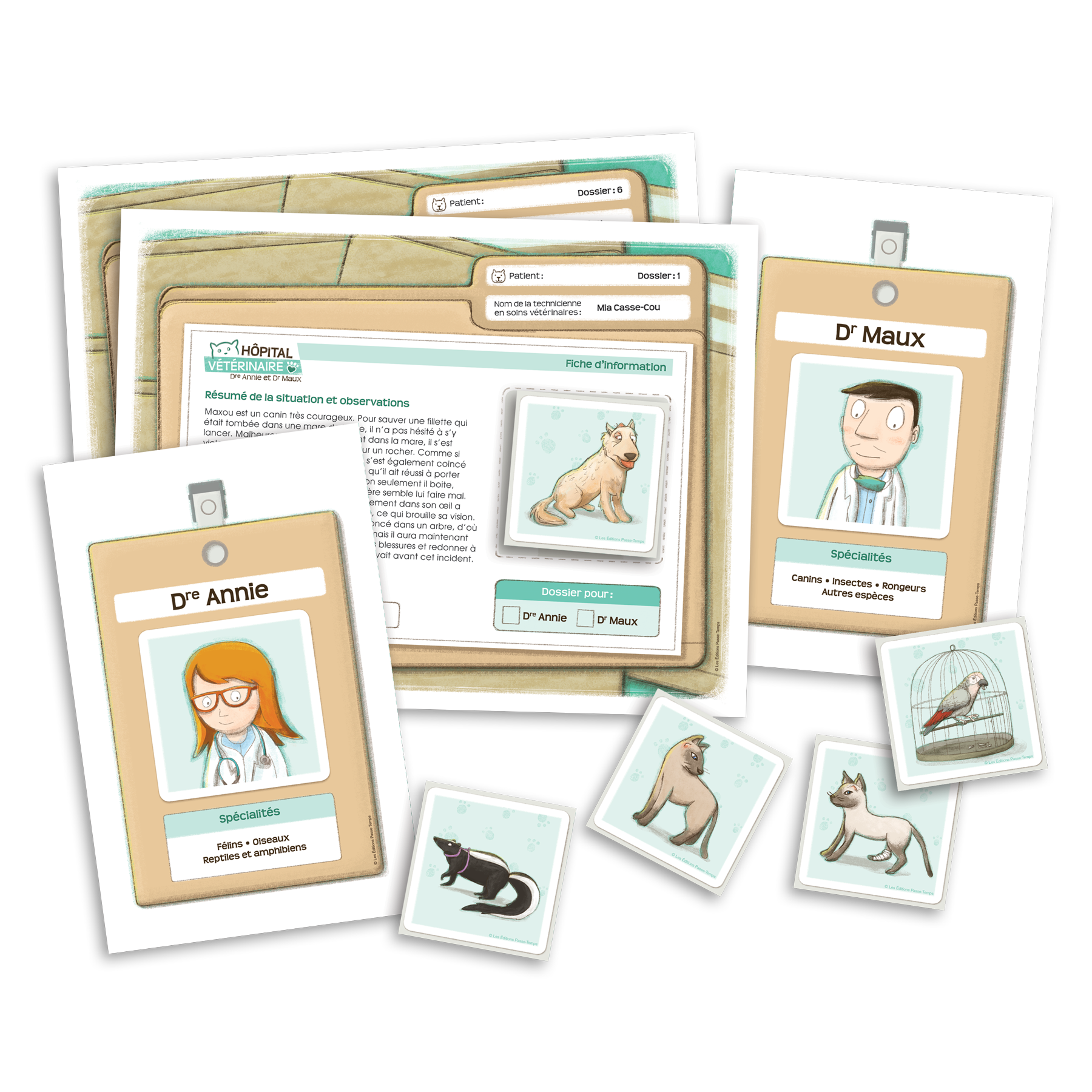 Cette trousse propose 9 jeux ludiques destinés aux élèves du 2e cycle du primaire. Ces jeux ont été élaborés autour de la thématique d’un hôpital vétérinaire et mettent en scène des personnages attachants, dont la Dre Annie, le Dr Maux et la technicienne en soins vétérinaires Mia Casse-Cou.