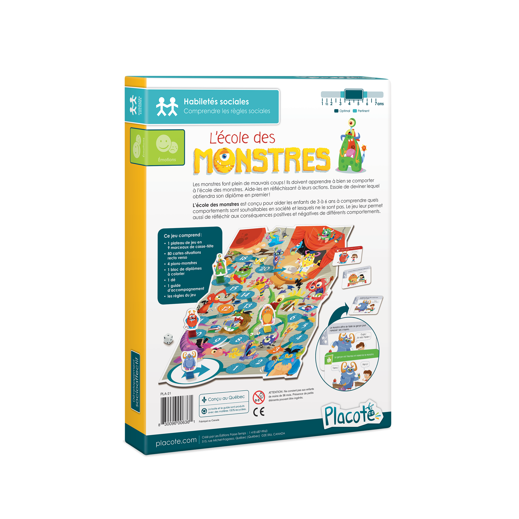 De 3 à 6 ans, l’enfant est en plein apprentissage des règles sociales et il comprend de mieux en mieux que ses gestes peuvent avoir des conséquences positives comme négatives, mais sa faible capacité d’autocontrôle ne lui permet pas toujours de mettre ses connaissances en pratique! L’école des monstres l’aide justement à découvrir et à distinguer des comportements adéquats et inadéquats lors d’un moment agréable où il est calme et disposé. Dans ce contexte, il est aussi plus apte à réfléchir aux conséquences de différentes actions.