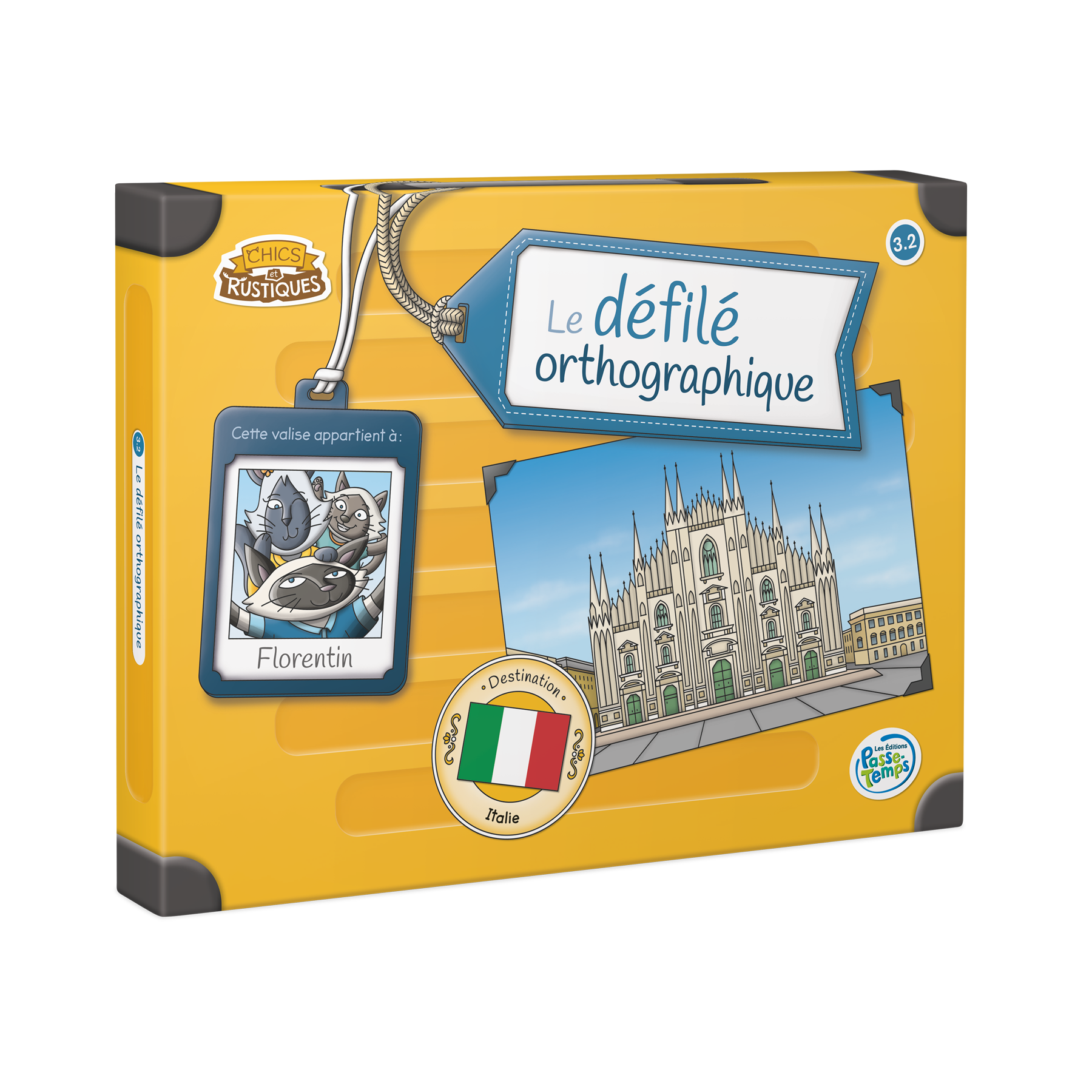 Le défilé orthographique est un jeu de parcours destiné aux élèves de 3e année du primaire ciblant l’apprentissage de quatre règles d’orthographe lexicale. Les joueurs doivent appliquer les différentes règles orthographiques pour découvrir quel personnage terminera le premier le défilé de mode à Milan, en Italie, sans chuter sur la scène.