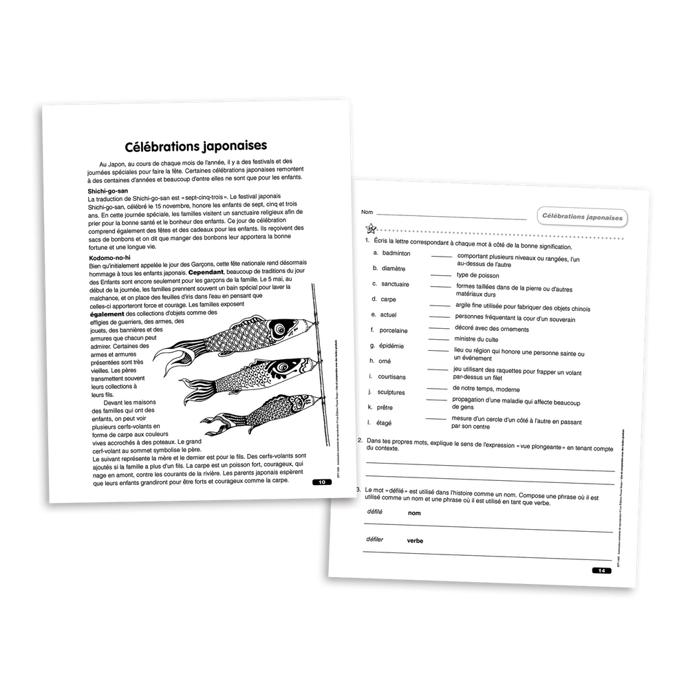 Le niveau de difficulté progresse à l'intérieur de chaque cahier, et d'un cahier à l'autre. De plus, les habiletés et les processus de lecture ciblés par les questions sont variés et clairement identifiés pour chaque exercice.