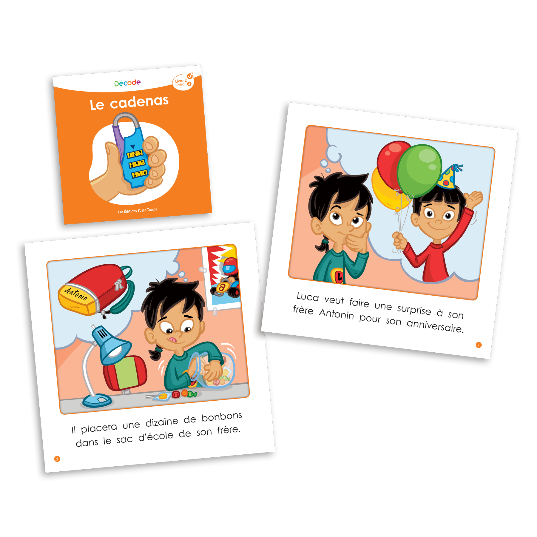 Afin que les élèves puissent exercer leurs habiletés de décodage dans un contexte authentique de lecture, il est possible de combiner la trousse d’évaluation Décode à la collection de livres régulière Décode.